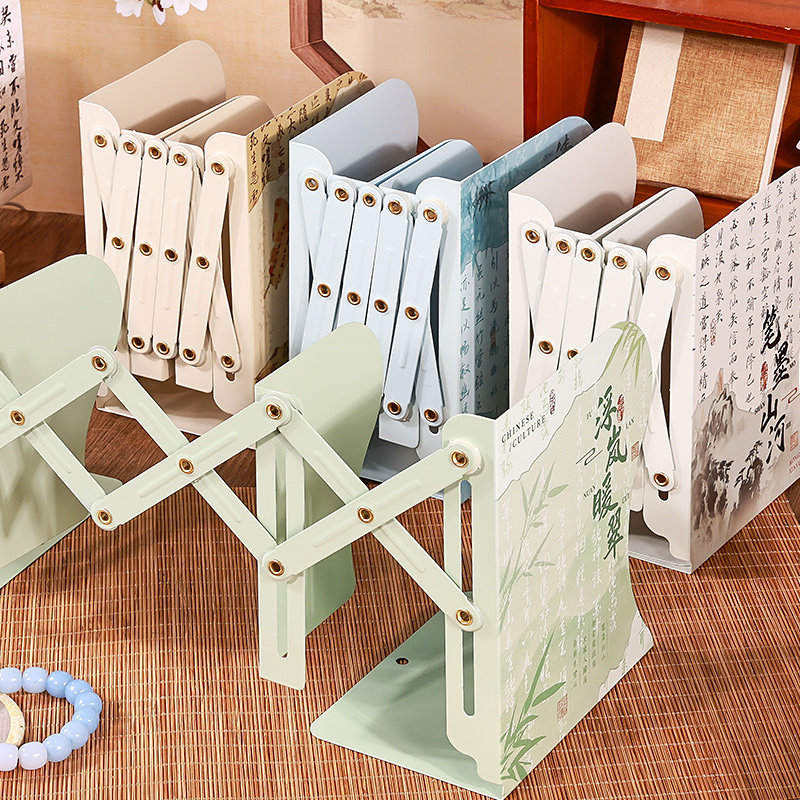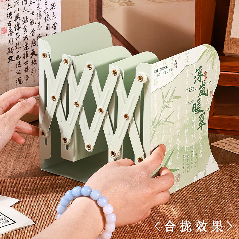 国潮古风可伸缩书立一体桌面书本折叠固定书本收纳创意书夹书靠书立架高中生书桌书夹学生用夹书挡板放书神器