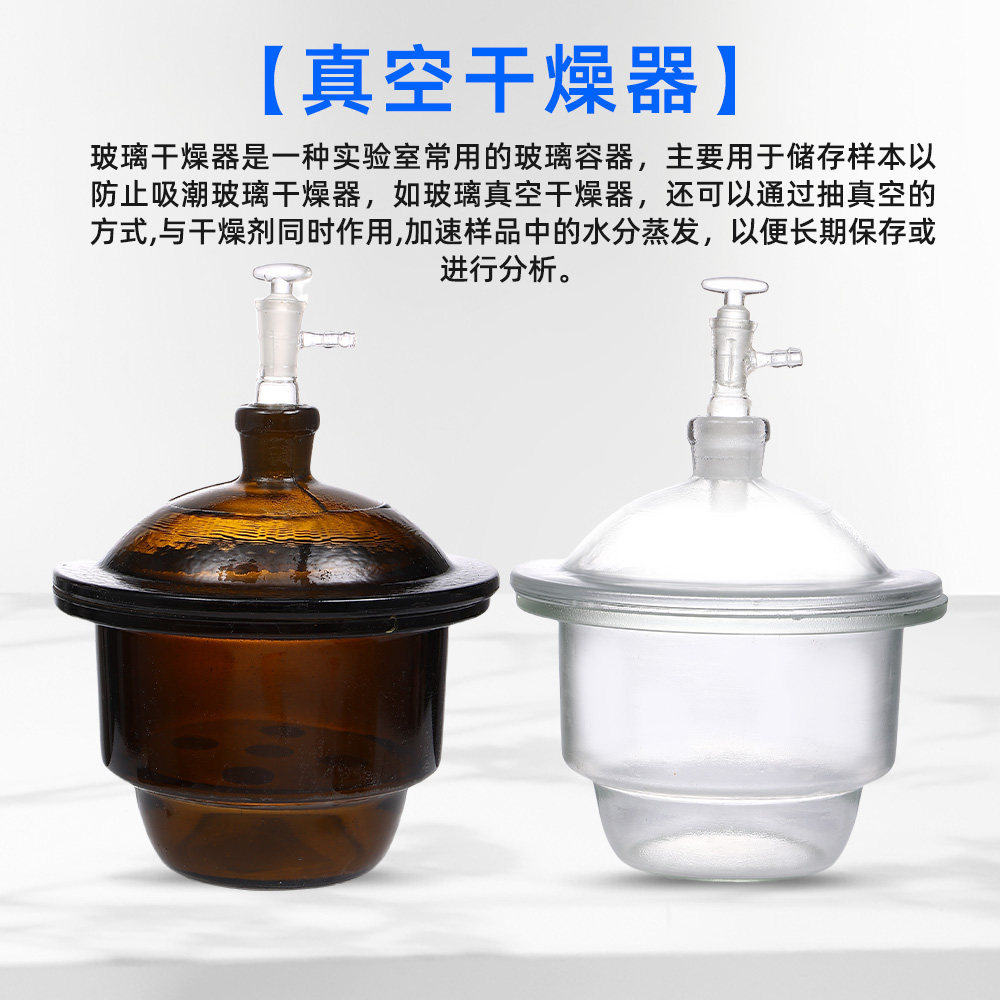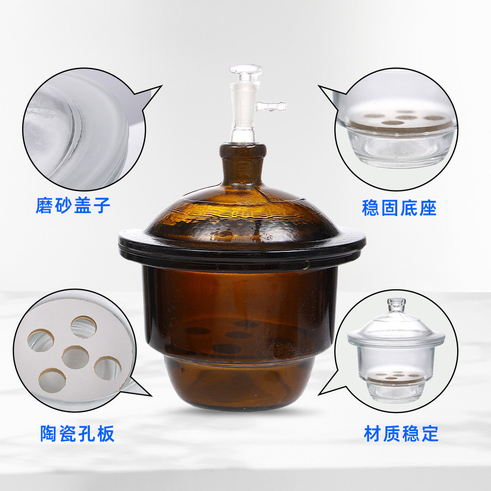 真空干燥器加厚透明棕色干燥罐盖子陶瓷隔板凡士林干燥剂变色硅胶