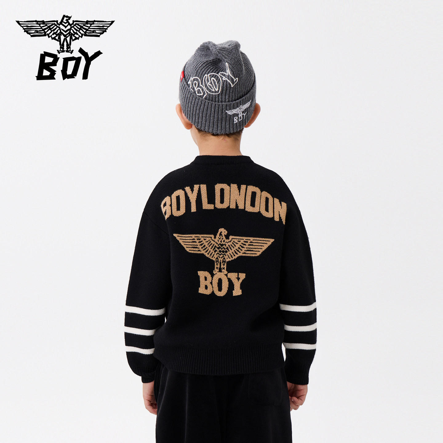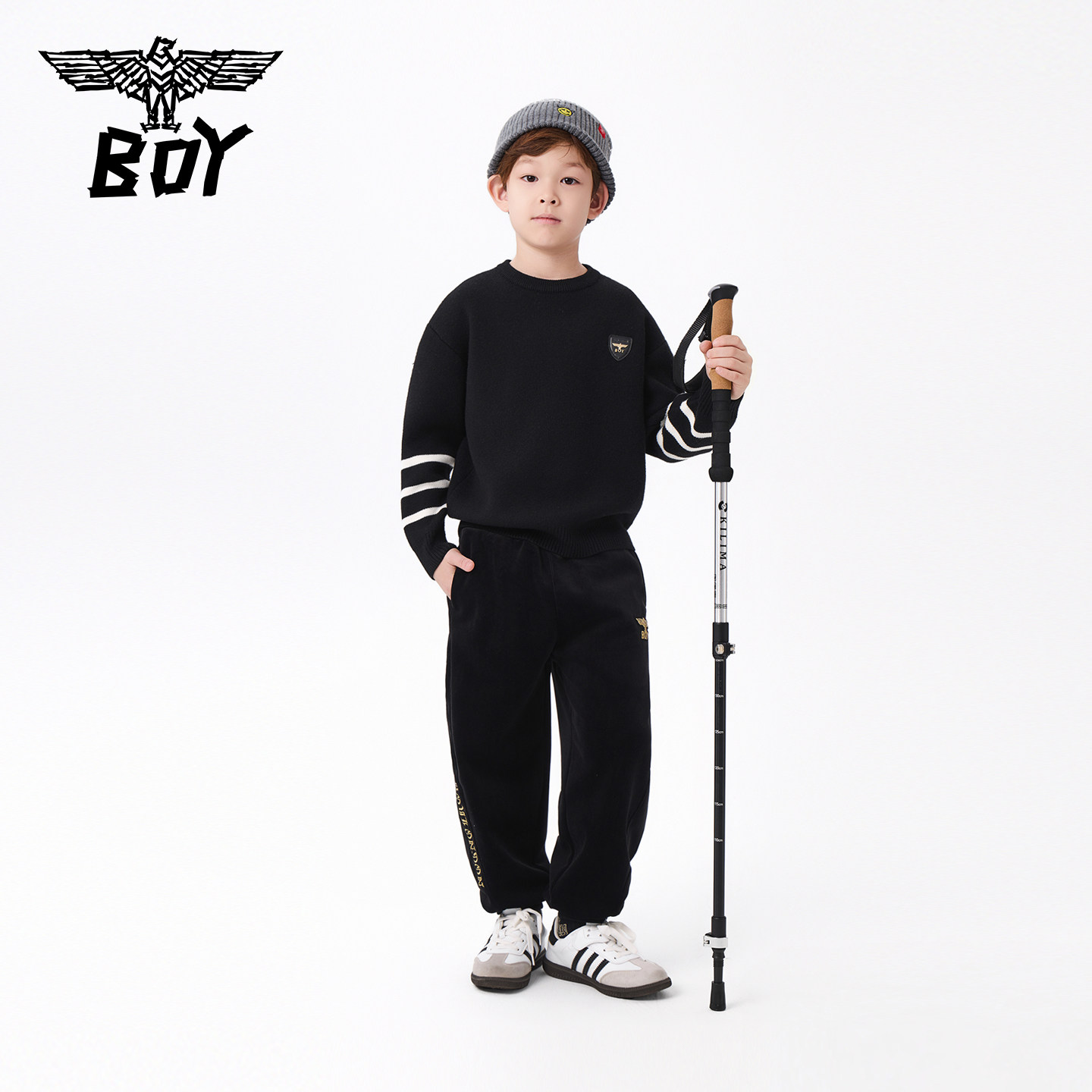 BOY童装 25秋新款儿童毛衣时尚条纹休闲套头针织衫男女童亲子装
