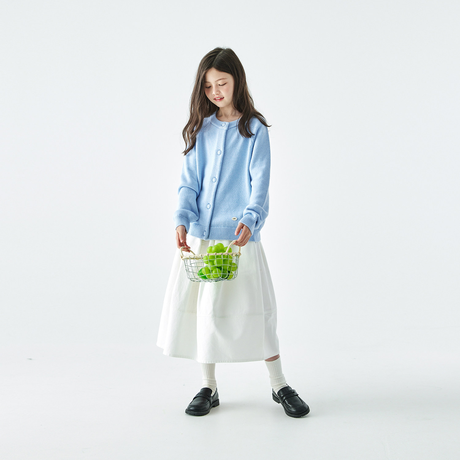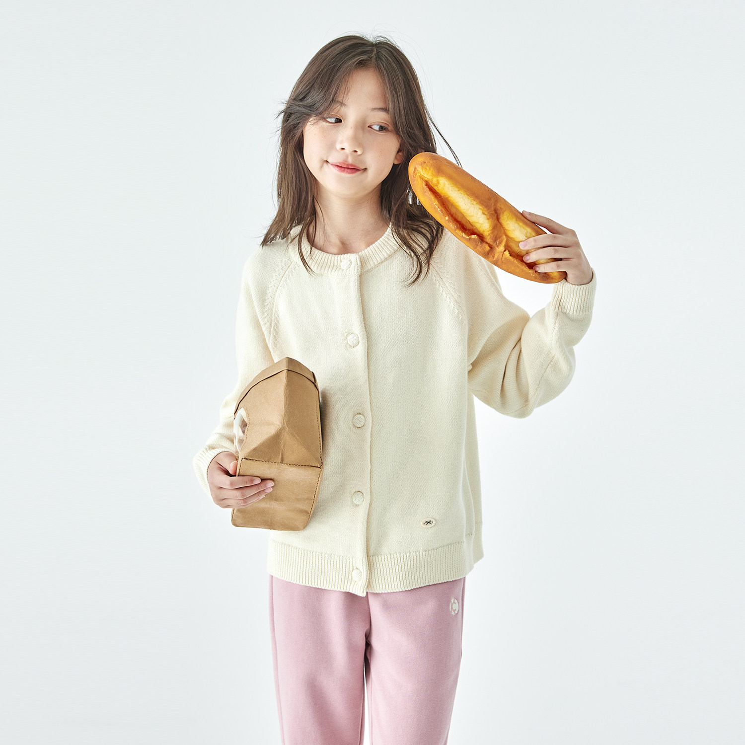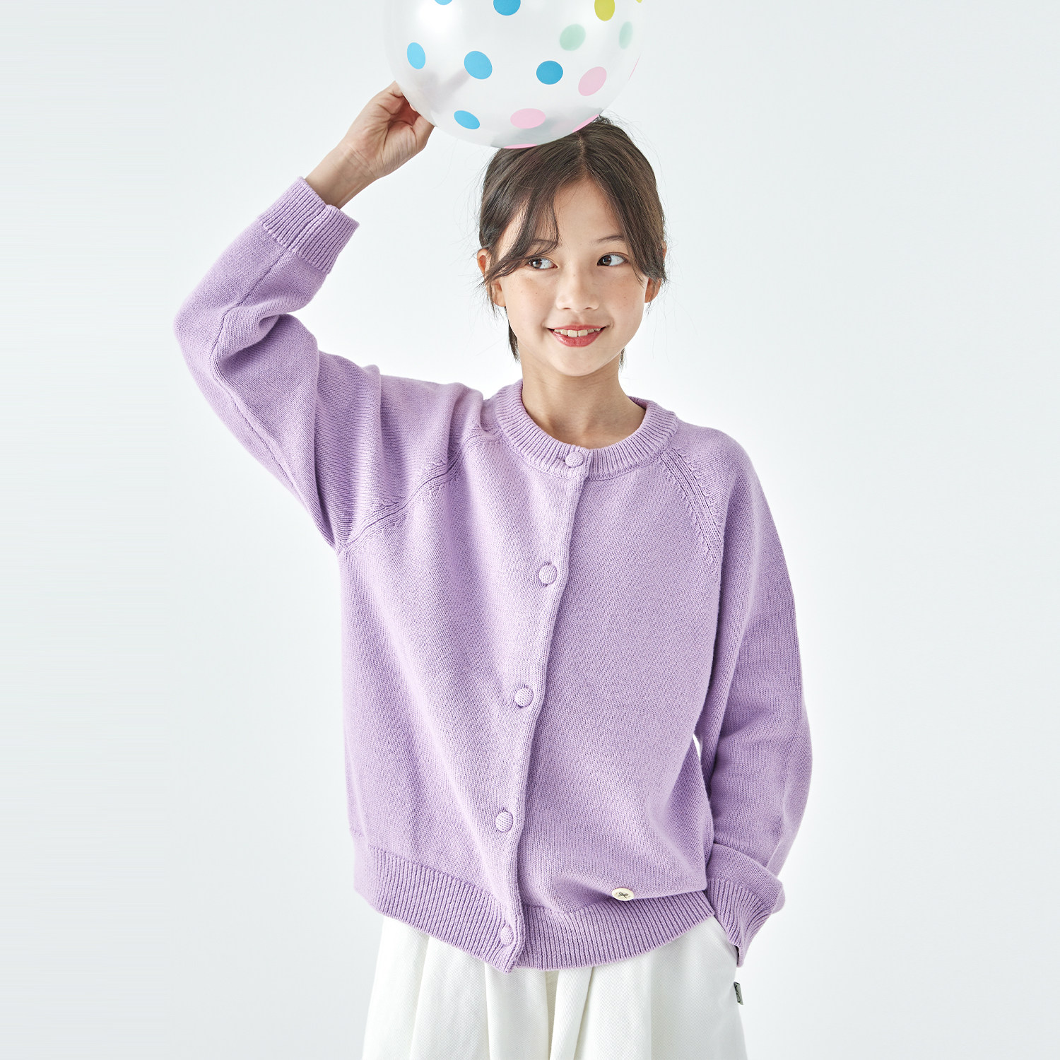 棵初2025年冬新款亲子中大女童针织开衫山羊绒混纺宽松简约毛衣