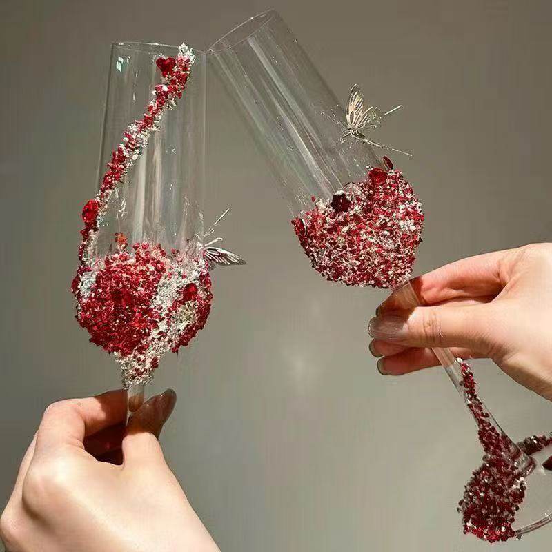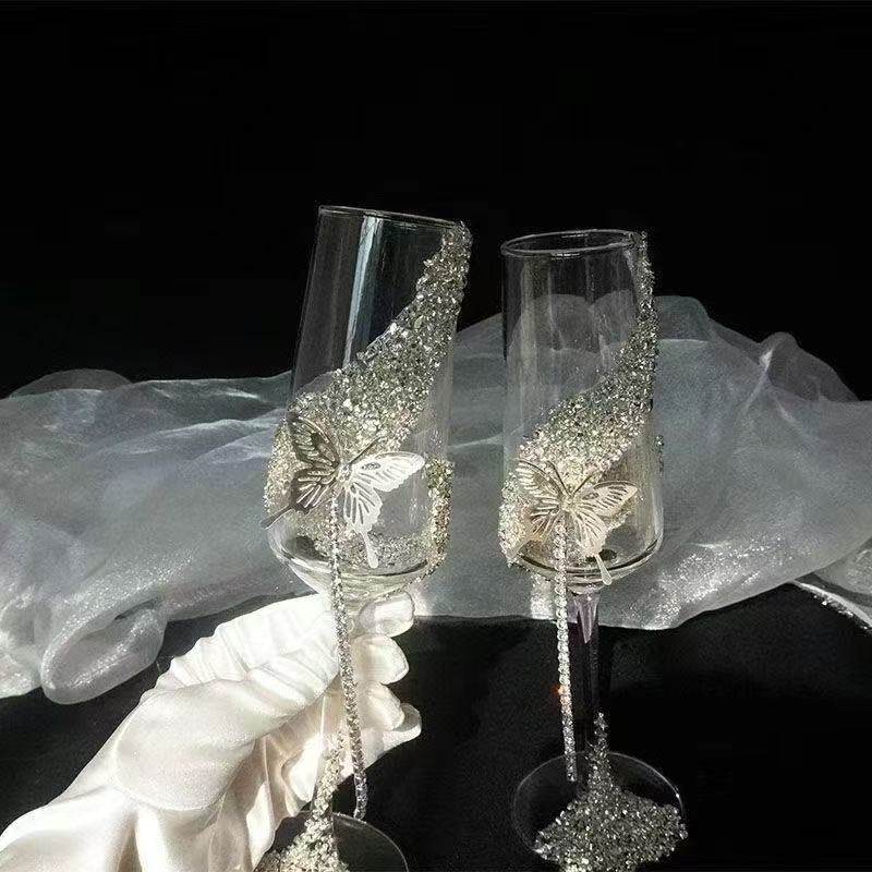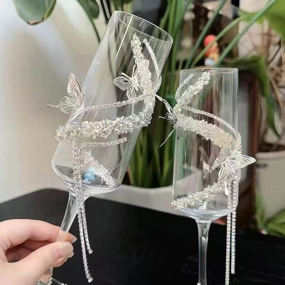敬酒杯成品高级感新娘敬超美高脚杯水晶流苏自制闺蜜订婚结婚礼物