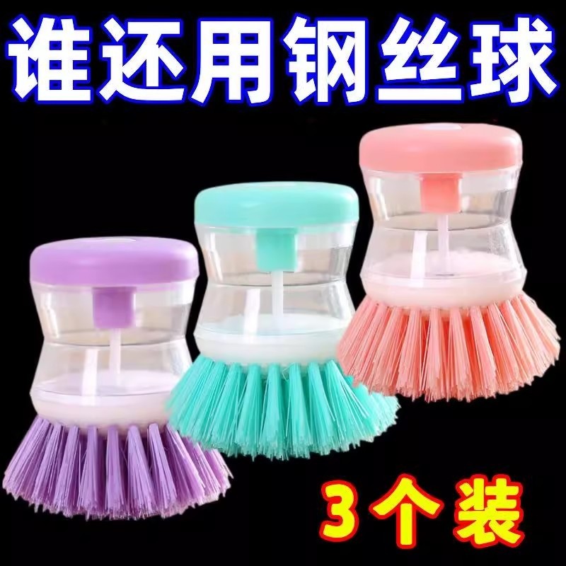 刷锅神器多功能清洁刷不沾油厨房按压式洗锅刷自动加液海绵洗碗刷