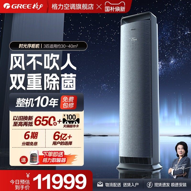 【格力柜机官方】新一级能效变频冷暖3匹客厅智能立式空调时光序