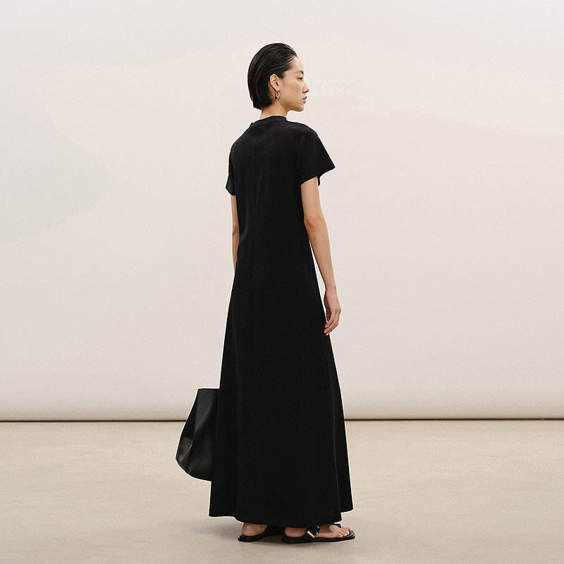 短袖莫代尔长裙大摆显瘦A字超长款打底宽松夏休闲度假连衣裙女装