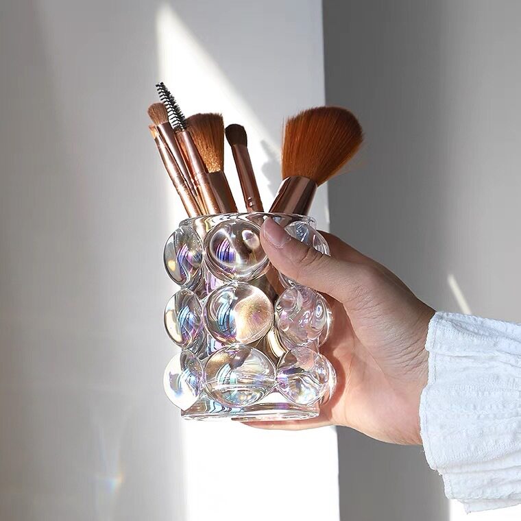 【次日达】韩国ins风创意玻璃笔筒小众装饰化妆刷桶眉笔筒女生可爱桌面收纳
