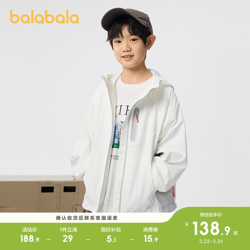 巴拉巴拉童装儿童外套大童男童上衣春装户外连帽便服印花时尚百搭