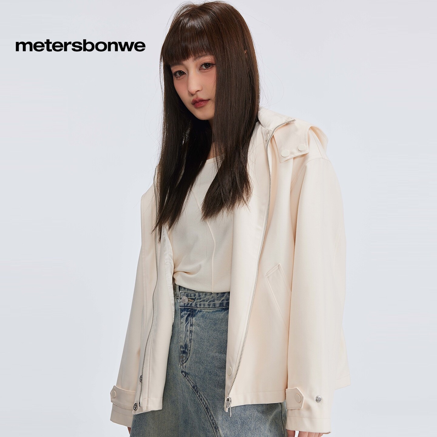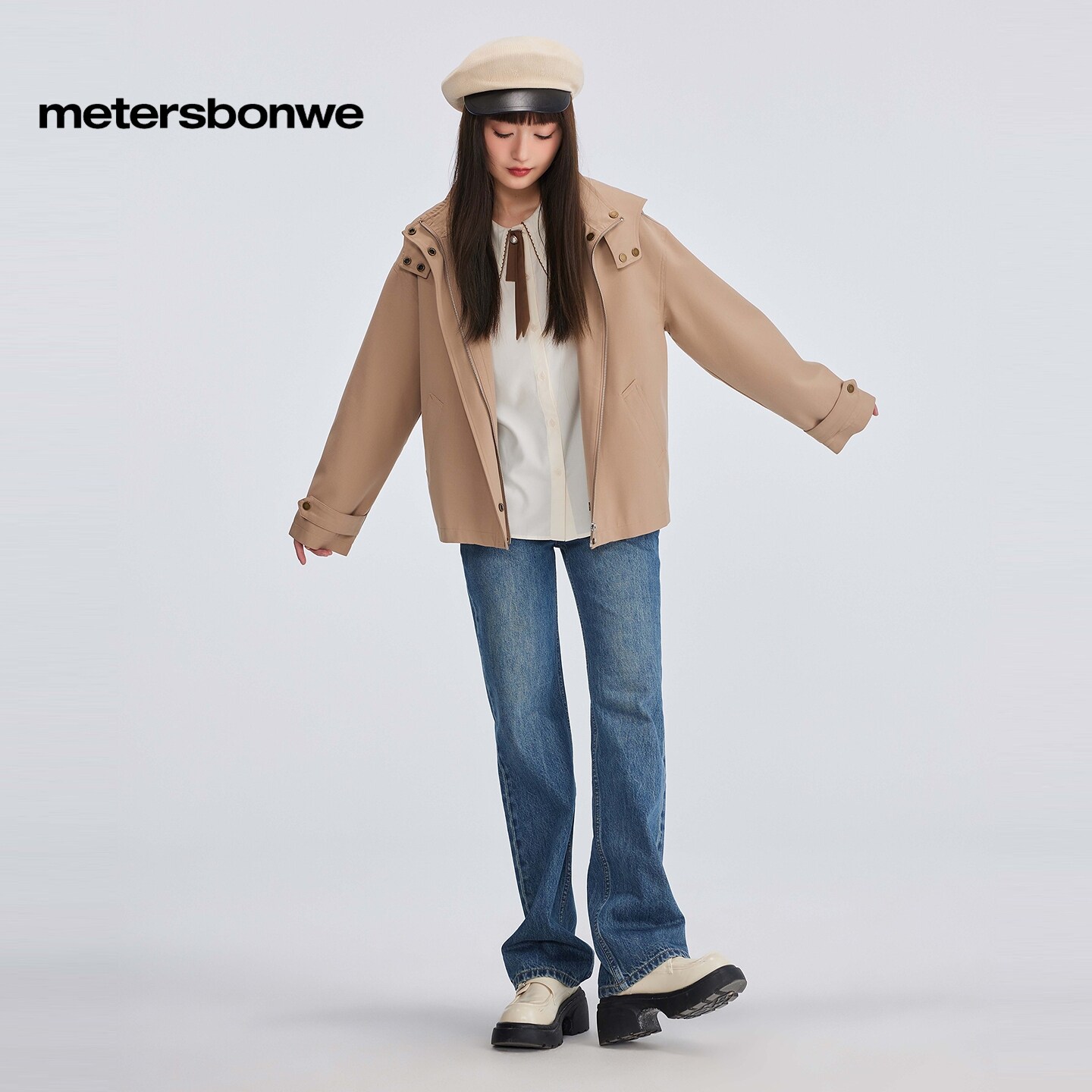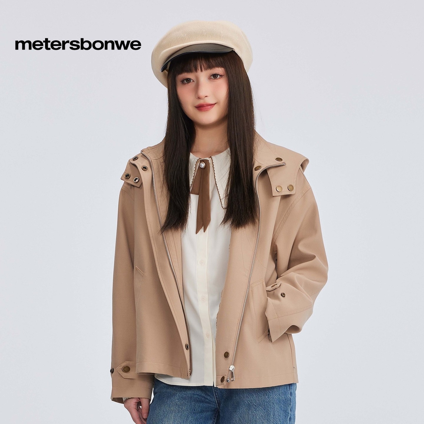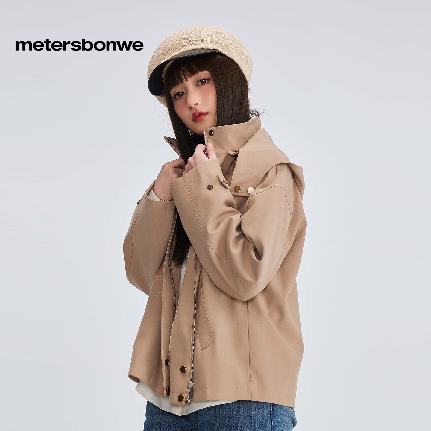 美特斯邦威女士短款风衣秋冬季款纯色舒适潮流可拆卸夹克连帽外套