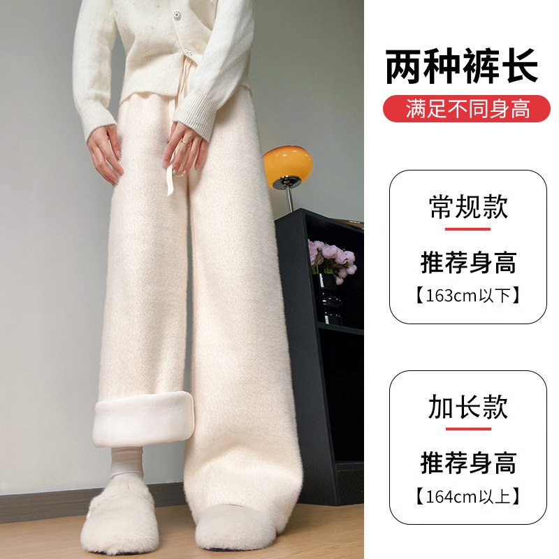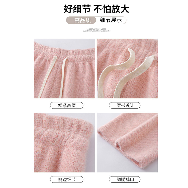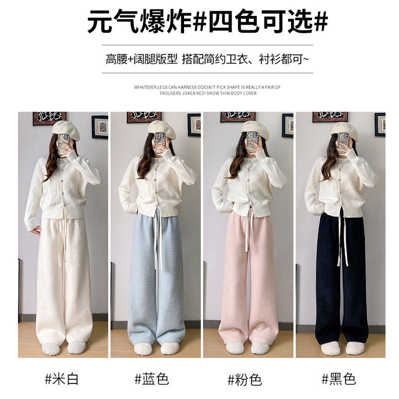 NOME(服饰)雪貂绒阔腿裤女秋冬加绒加厚宽松慵懒高腰直筒休闲裤