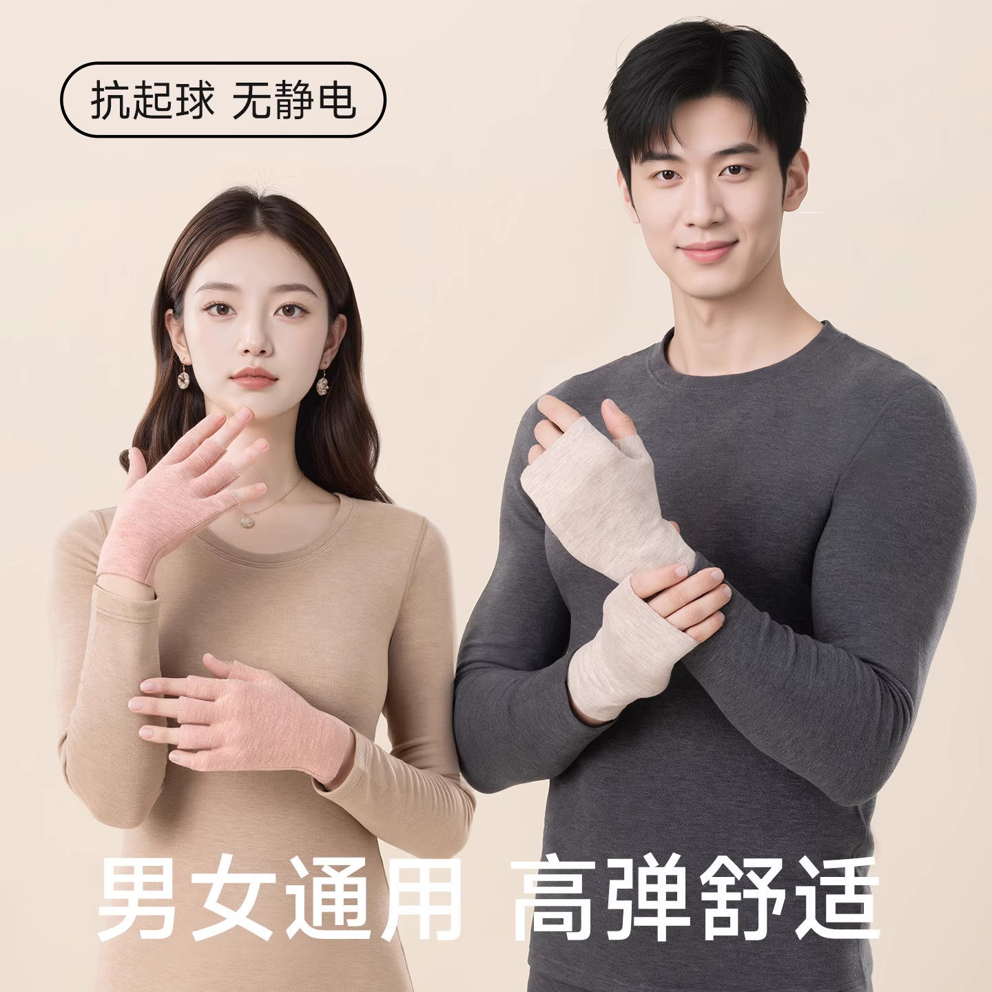 德绒手套男女秋冬保暖自发热双面加绒加厚露指学生写字触屏护手套