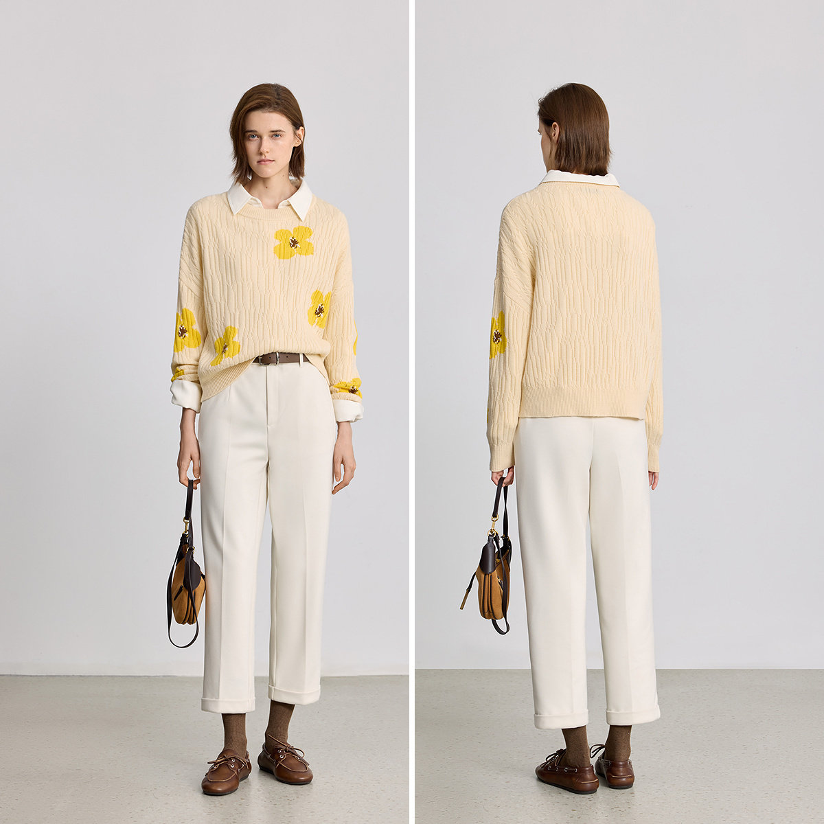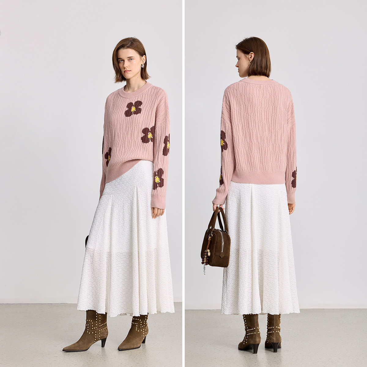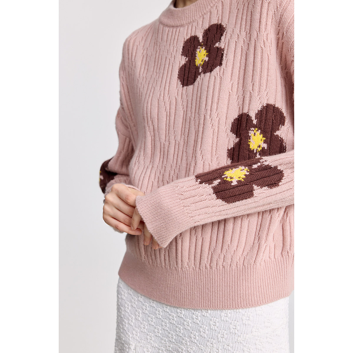 LILY2025冬新款羊毛混纺撞色幸运花提花宽松加厚套头针织衫毛衣女