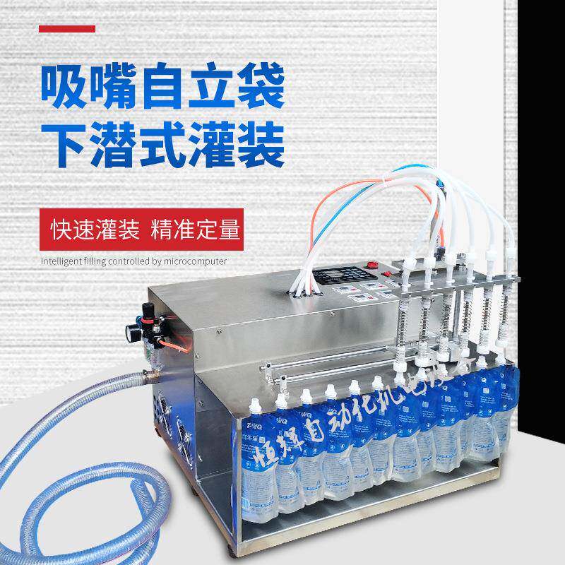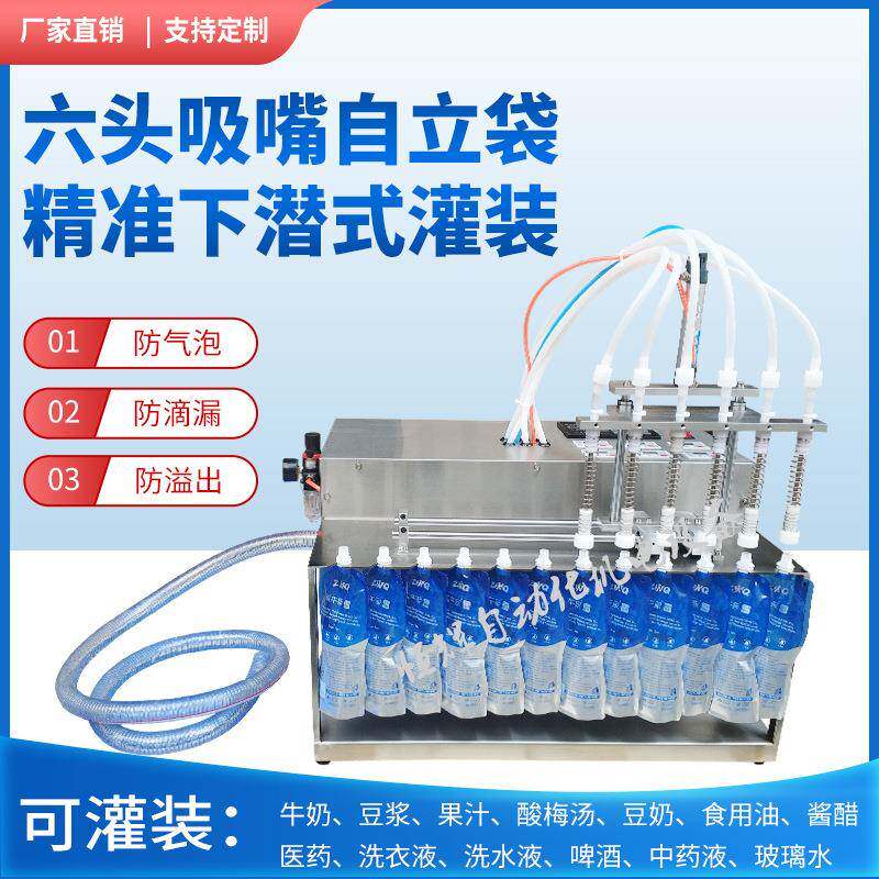 半自动6头吸嘴自立袋灌装机酸梅汤豆浆液体酸奶中药滑轨灌分装机
