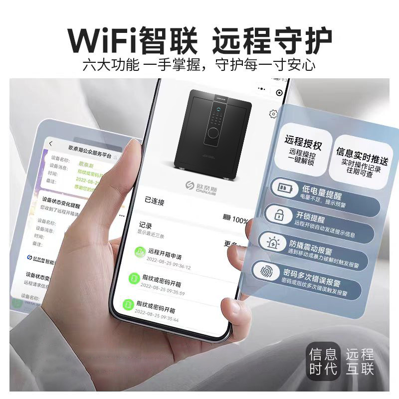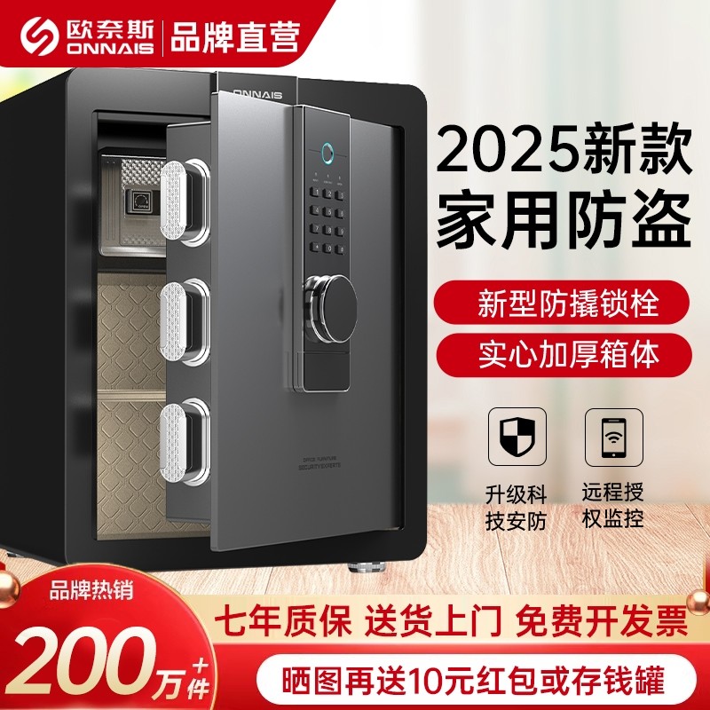 欧奈斯保险柜家用小型2025年新款防盗保险箱指纹密码办公钥匙保管箱隐藏式床头柜入墙智能多功能商用防撬夹万
