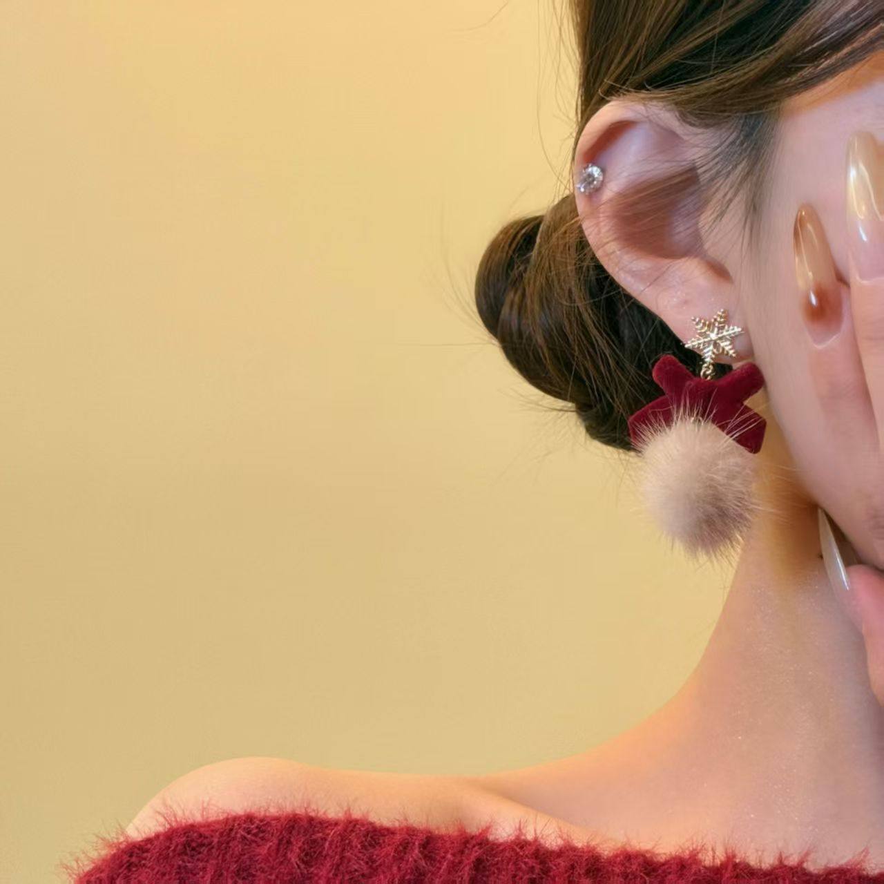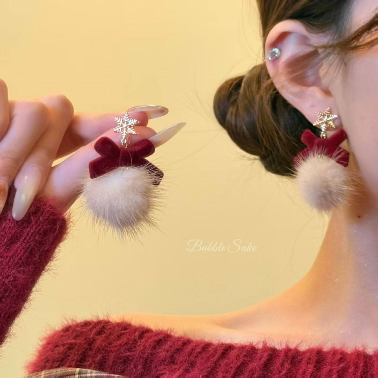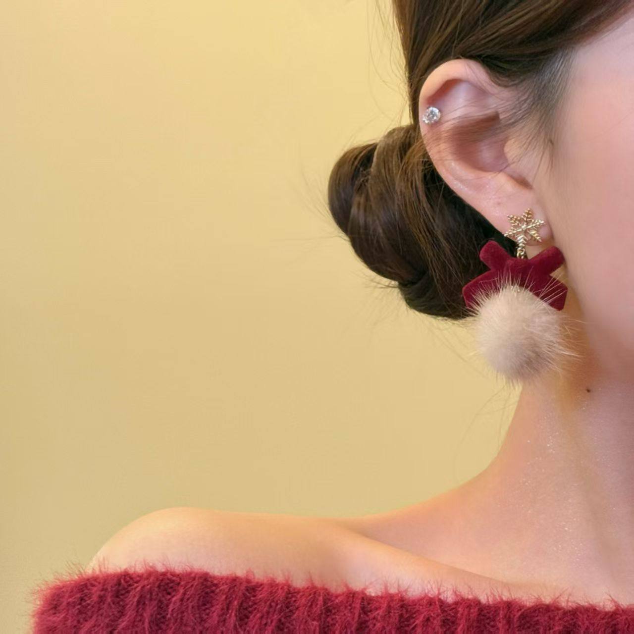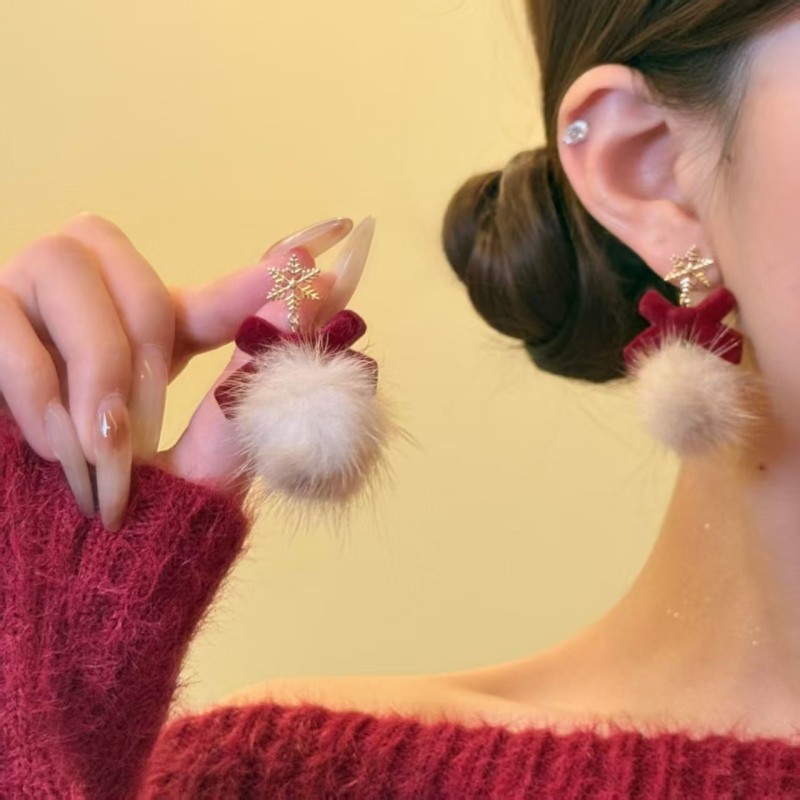 绒绒派对 红色丝绒蝴蝶结耳钉女2026新款秋冬小众高级感耳环耳饰