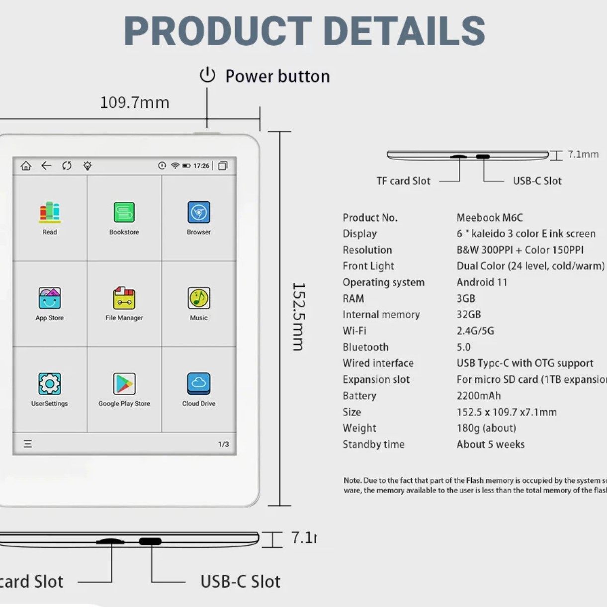 M6C高清彩色墨水屏6寸电子阅读器 MEEBOOK电纸书300PPI 3+32G内存