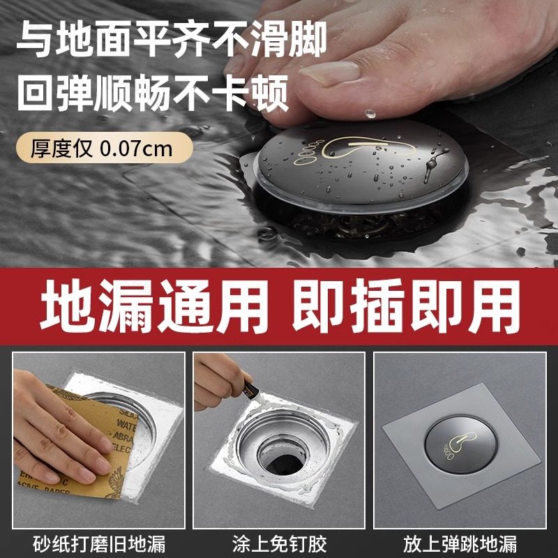 卫生间防臭地漏脚踩按压式弹跳芯浴室下水道防返臭神器通用翻新器