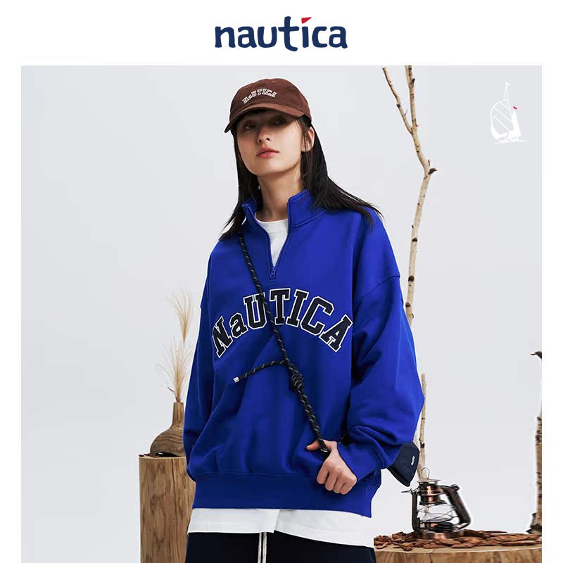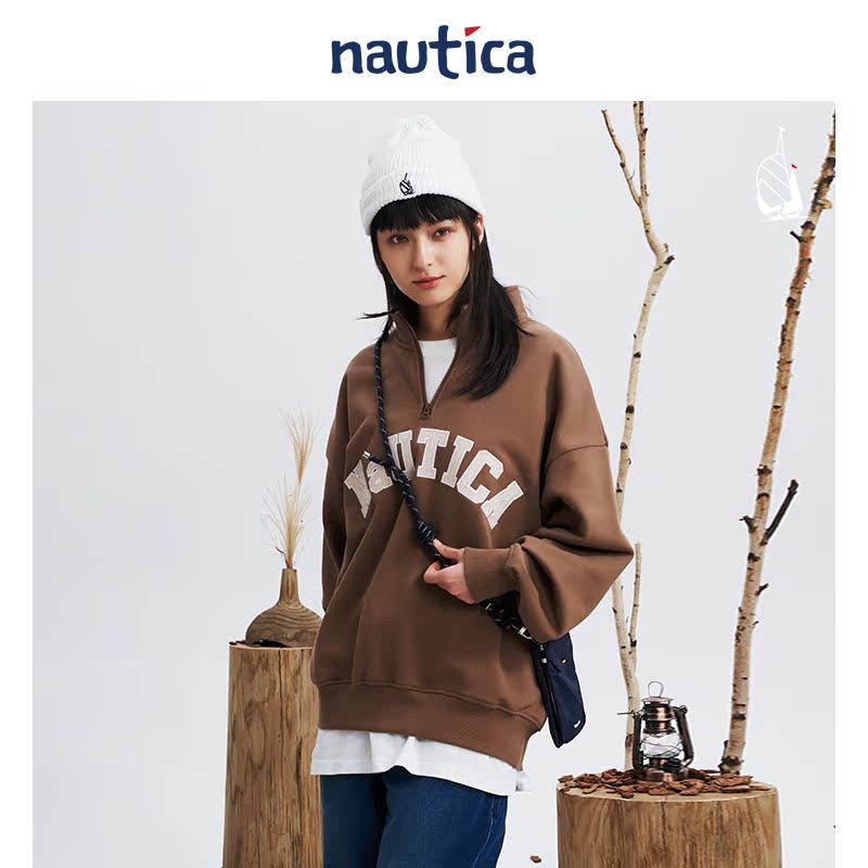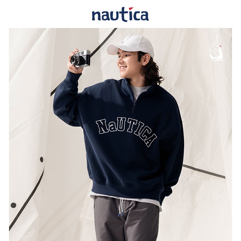 【官方正品】nautica白帆 日系中性宽松大logo半拉链卫衣KW3318