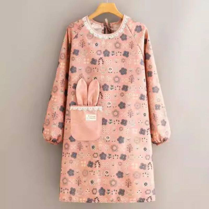 2026日本新款棉麻长袖围裙家用厨房透气罩衣女耐磨防污做饭工作服