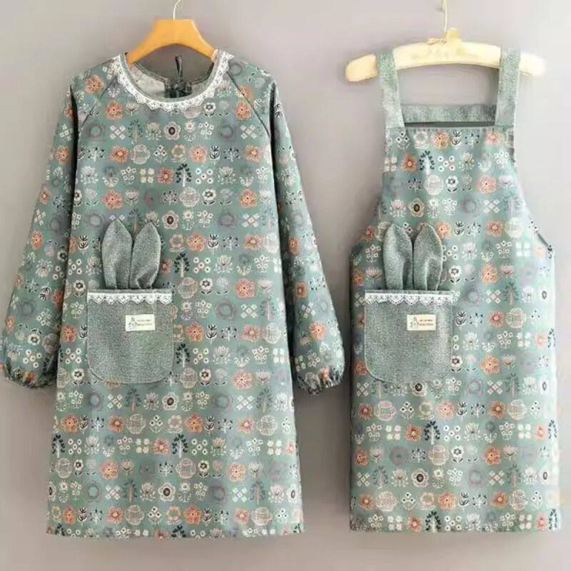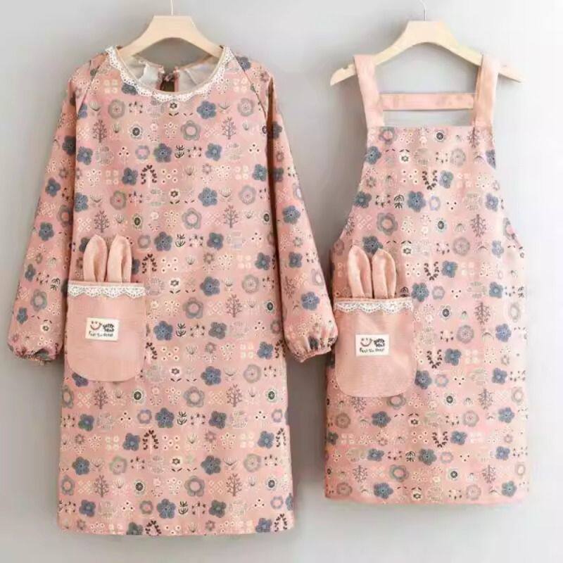 围裙女厨房罩衣上班工作服长袖棉布做饭防污透气耐磨时尚新款网红