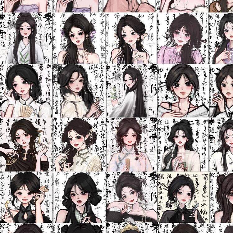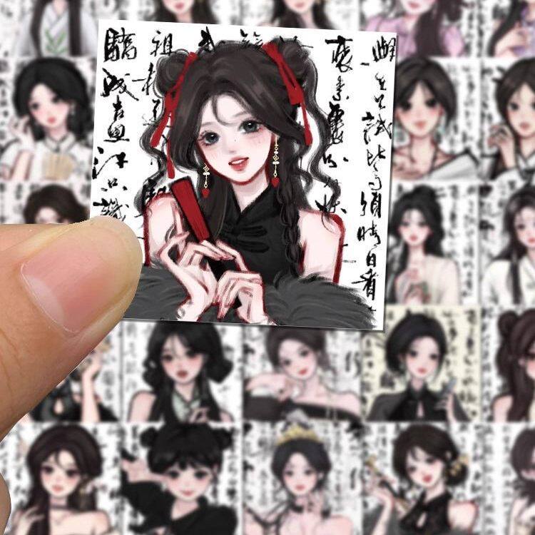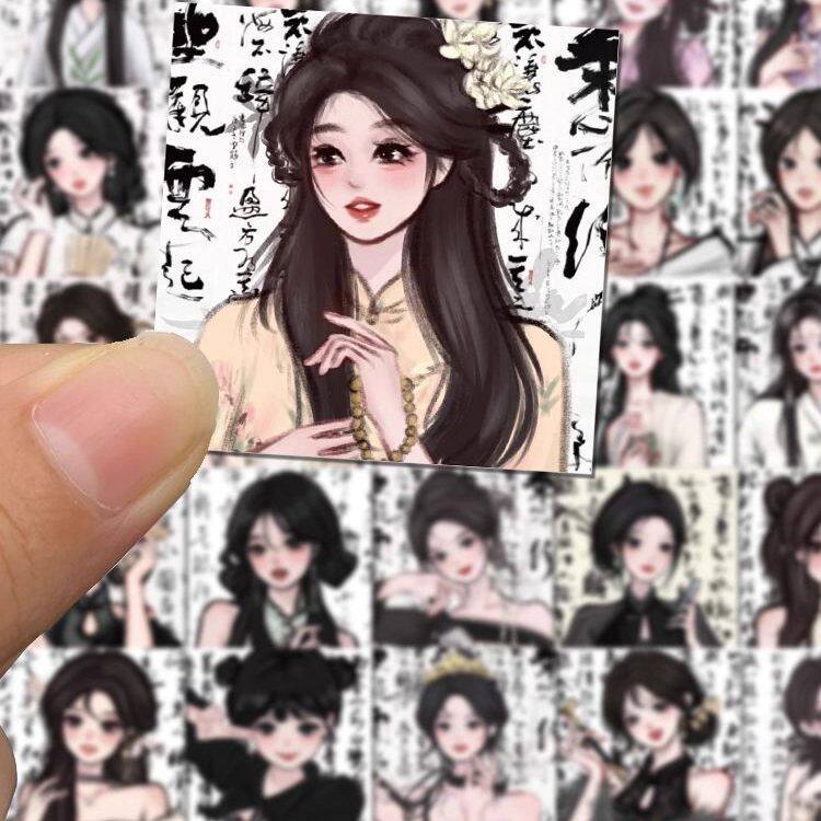 62张may新中式贴纸国潮笔墨画文字高颜值少女装饰防水贴画行李箱