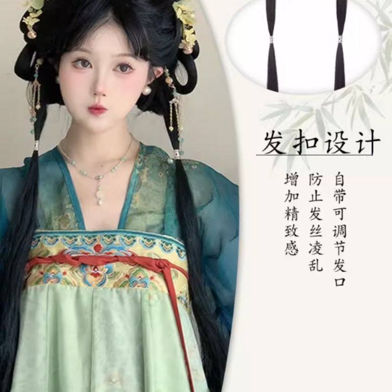 儿童汉服假发蝴蝶结发髻造型古装假发包女童汉服假发头饰假发古风