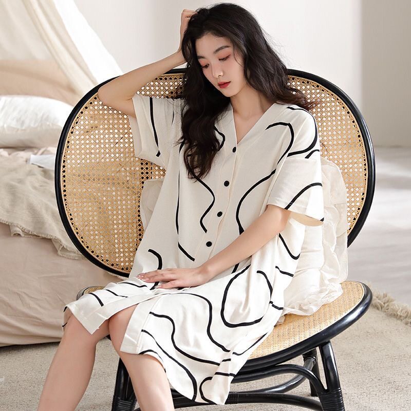 夏季睡裙女孩短袖大码睡衣200斤宽松加肥加大码夏天女薄款中长款