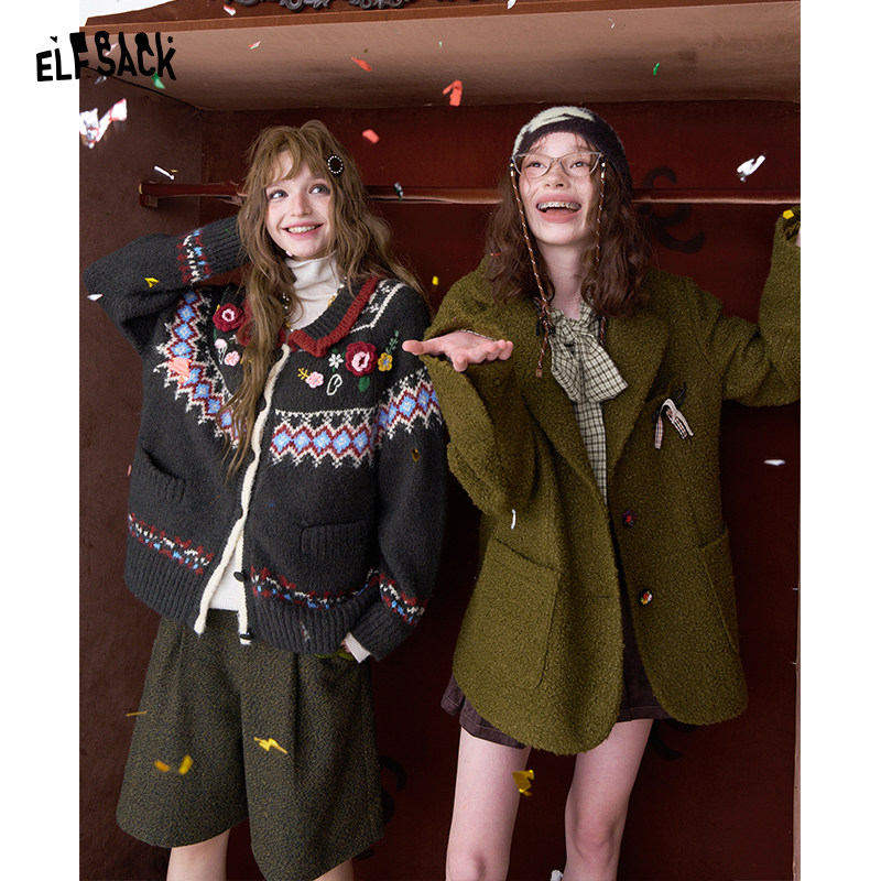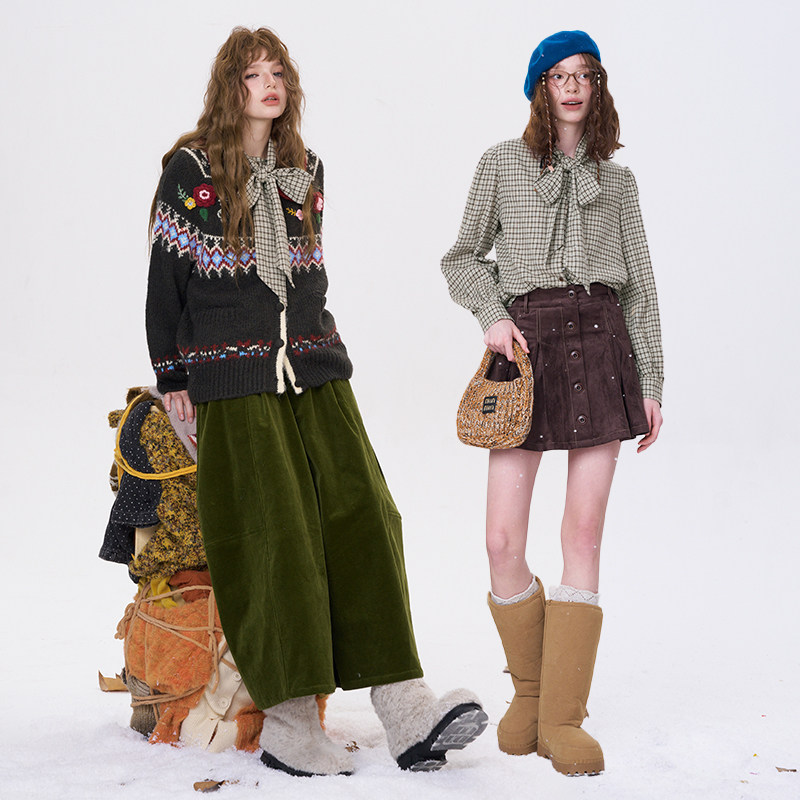 森马长袖衬衫女冬季菱形格V领短背心易打理衬衣俏皮学院风两件套