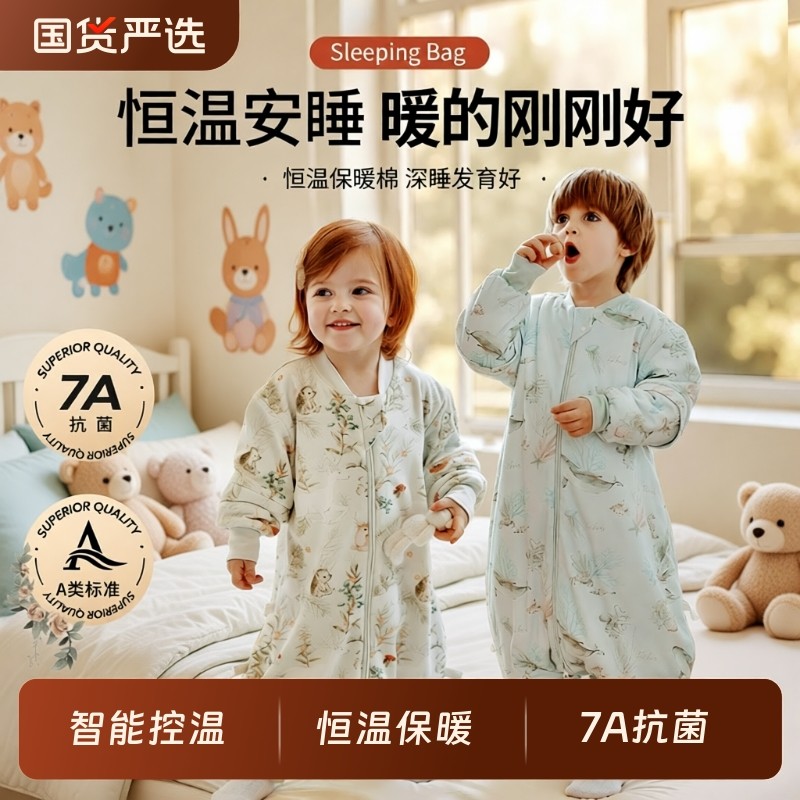 科巢婴儿睡袋春秋冬款恒温分腿睡袋桑蚕丝宝宝儿童防踢被四季通用
