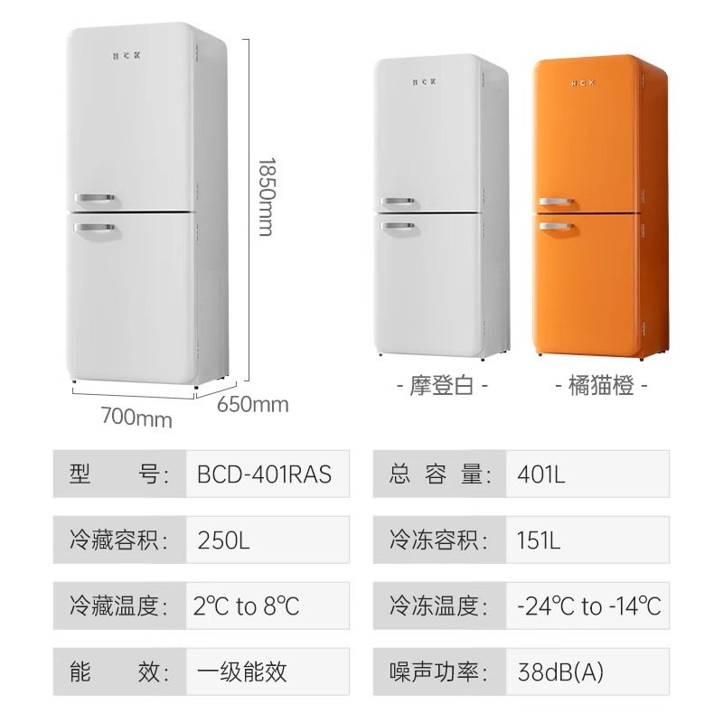 HCK哈士奇小香风SE复古冰箱双变频节能双门客厅无霜家用保鲜冷冻