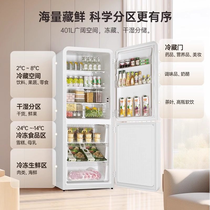 HCK哈士奇401L小香风双门复古冰箱家用冷藏冷冻客厅小香风Max