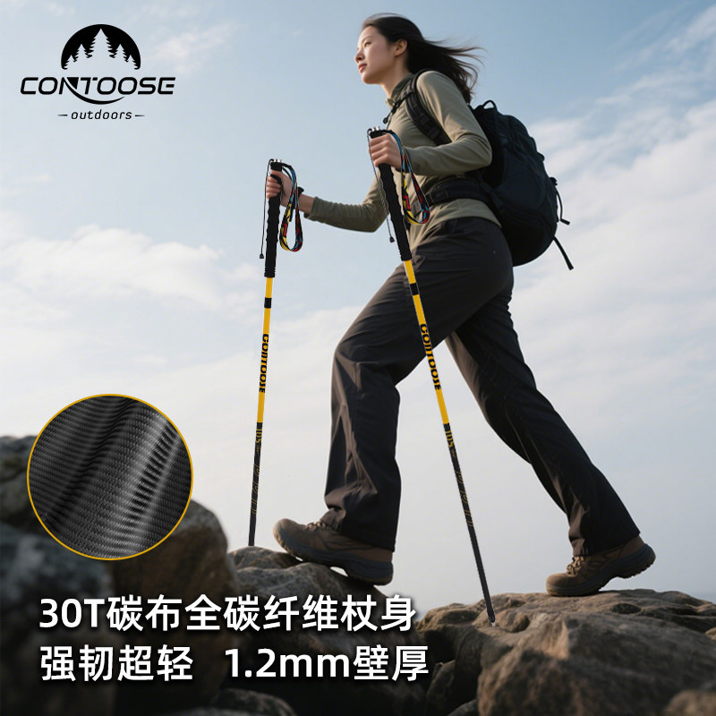 探险家户外登山杖碳素伸缩手杖拐棍专业爬山装备碳纤维徒步拐杖