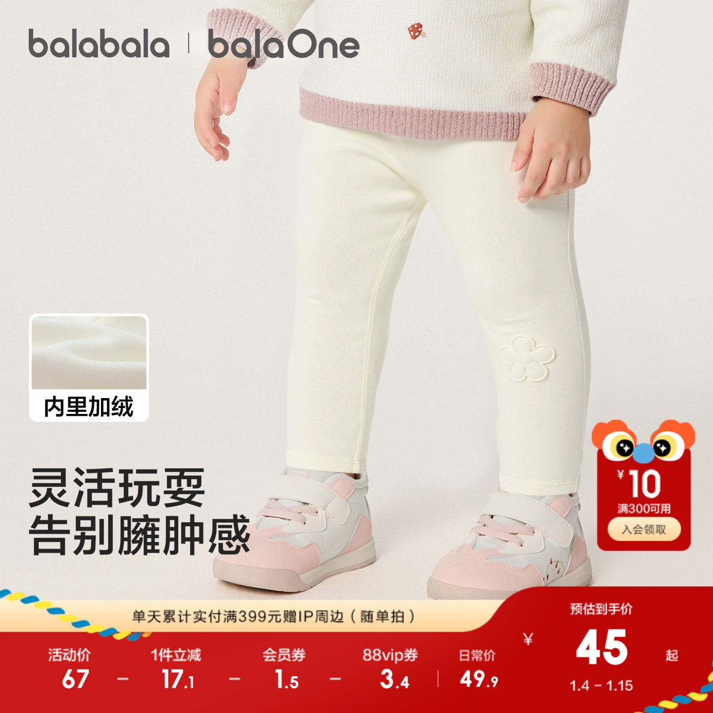 巴拉巴拉balaOne宝宝打底裤加绒保暖长裤冬女童男童裤子2025新款