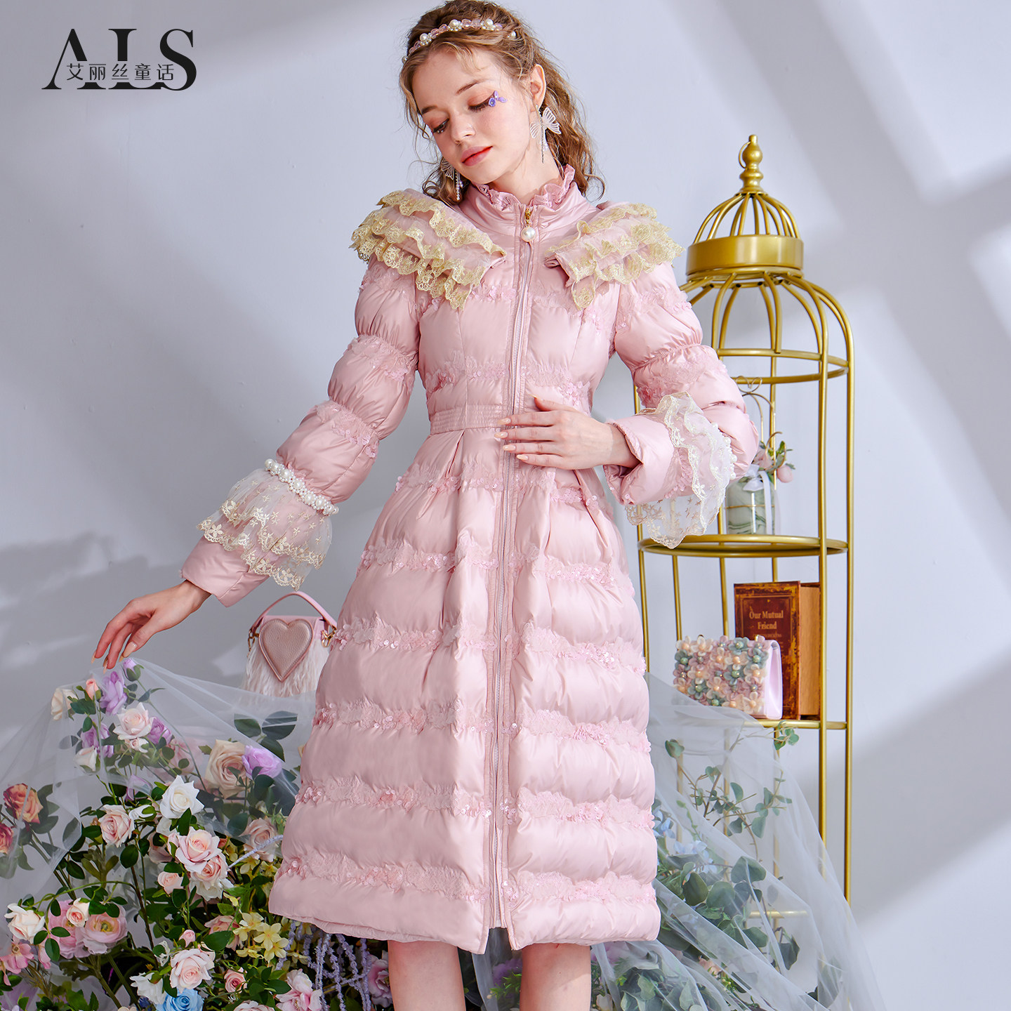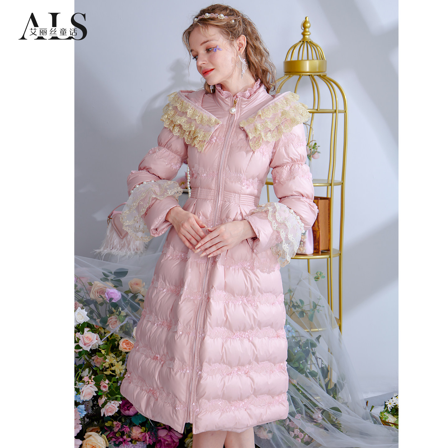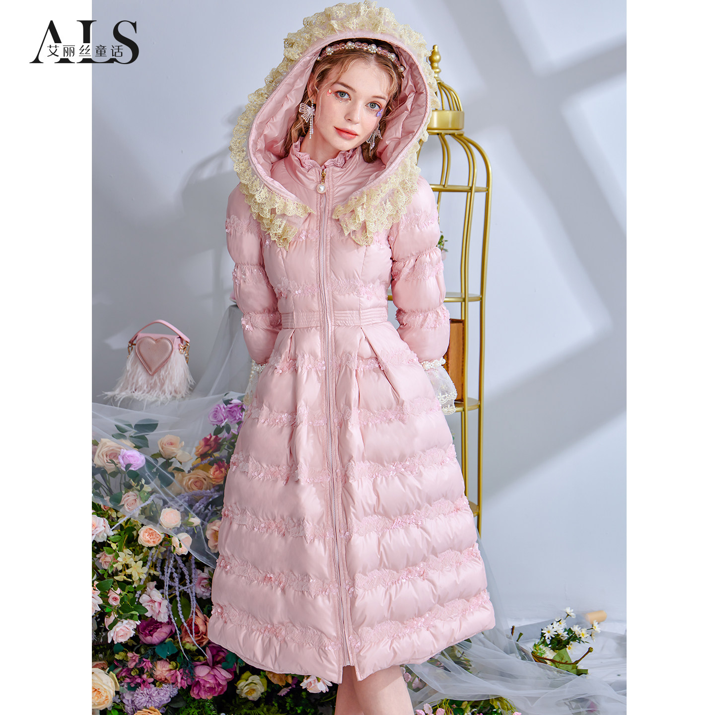 艾丽丝2025冬季新款花朵刺绣白色甜美仙气保暖中长款羽绒服外套女