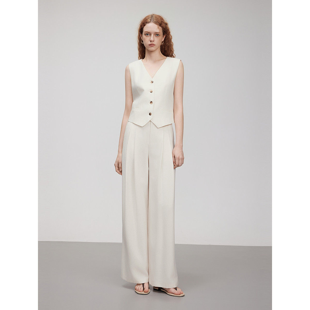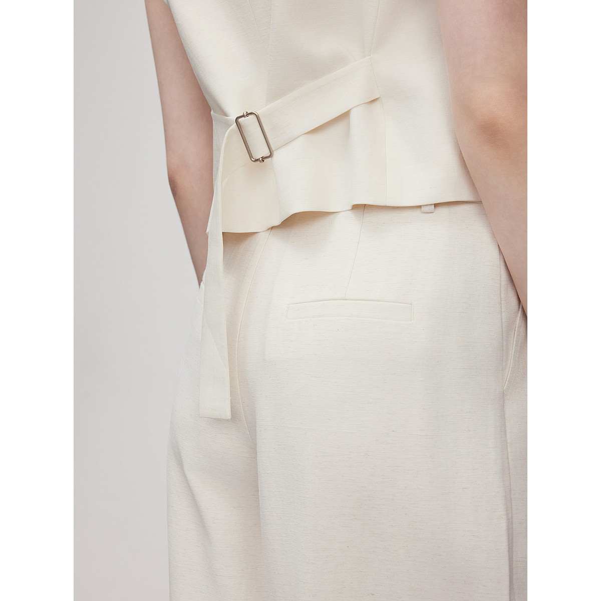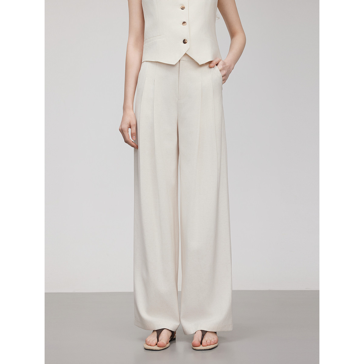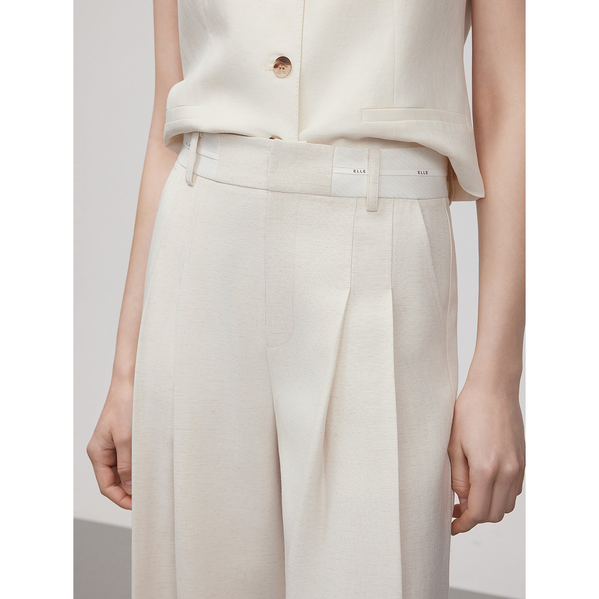 【商场同款】ELLE白色高腰亚麻西装裤女2025夏季新款显瘦拖地裤
