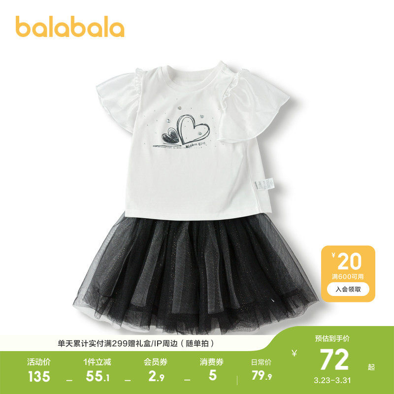 巴拉巴拉女童短袖套装儿童夏装小童网纱印花裙装甜美洋气时尚印花