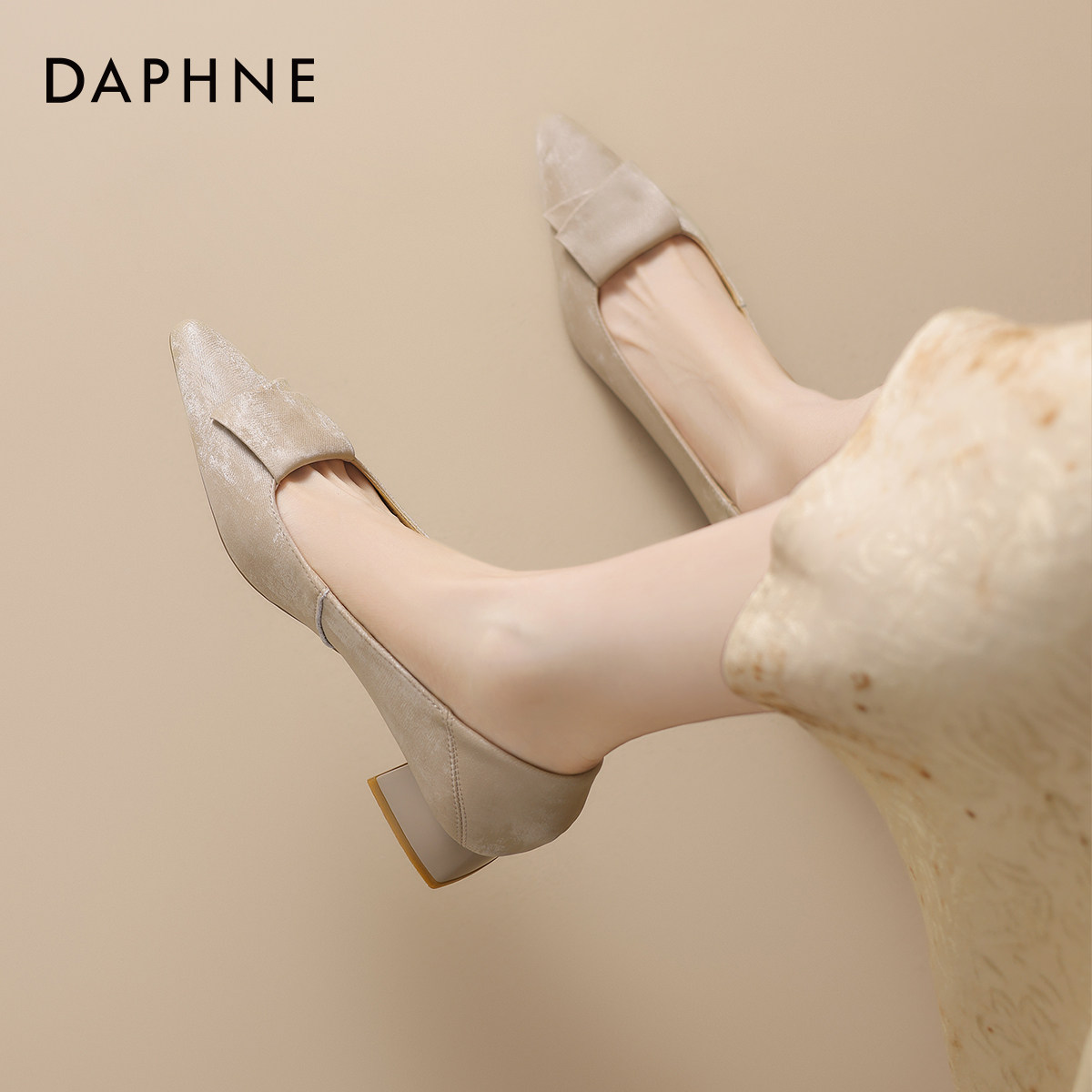 达芙妮尖头气质单鞋女2025新款春季新中式旗袍鞋粗跟一脚蹬小皮鞋
