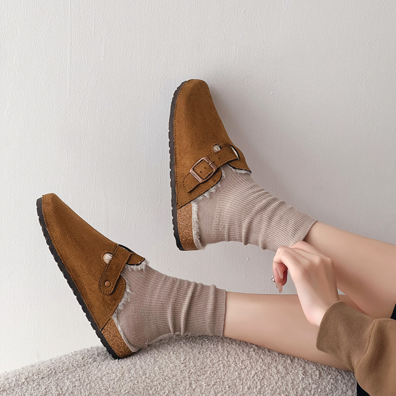 叁叔家~内增高勃肯鞋女加绒秋冬保暖毛毛半拖外穿厚底博肯鞋
