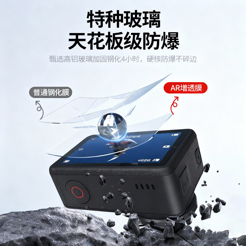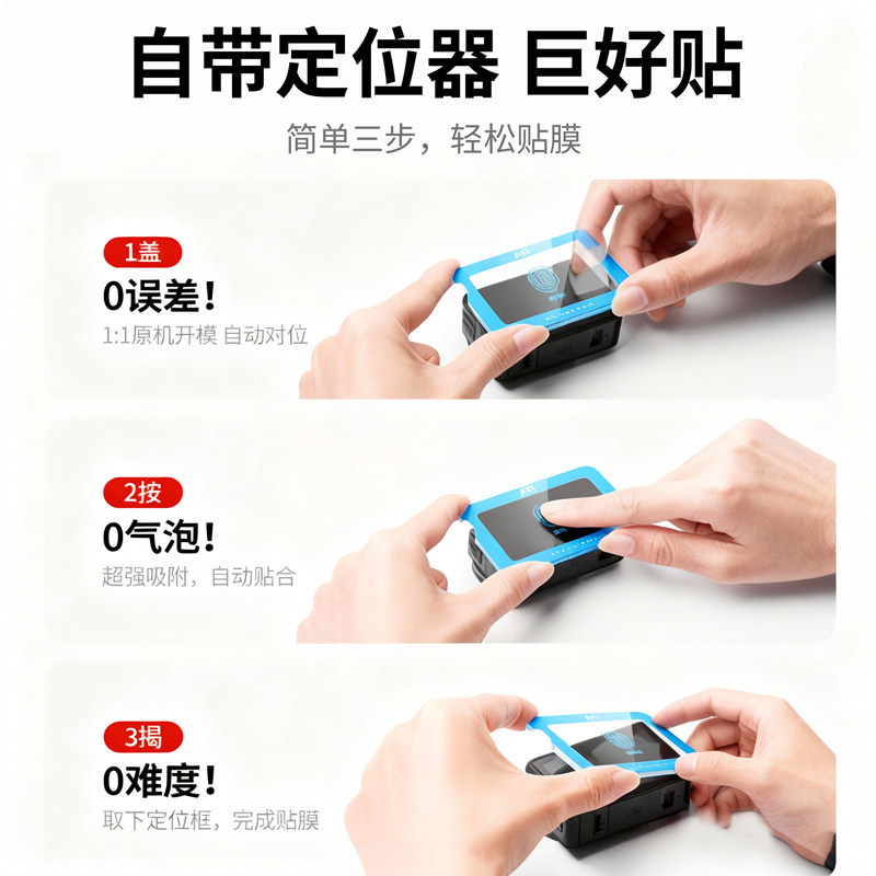 【秒贴神器】适用大疆Action5Pro屏幕膜Action4钢化膜运动相机前后镜头保护膜全屏高清防光刮水玻璃贴膜配件