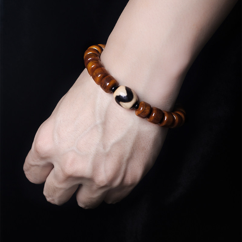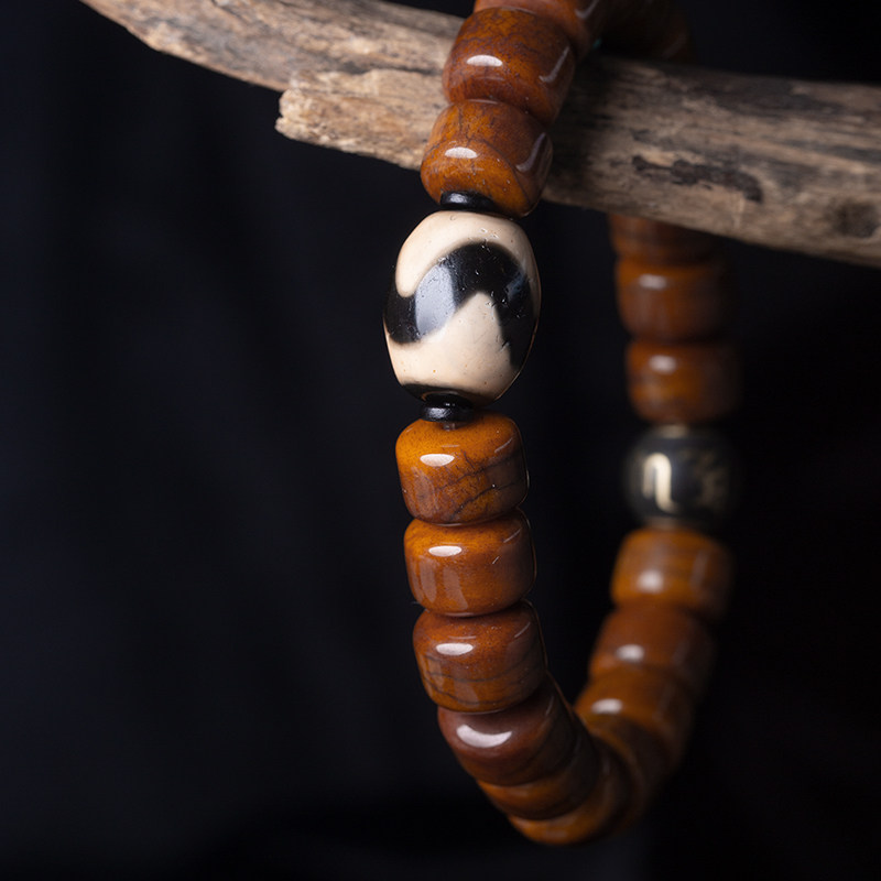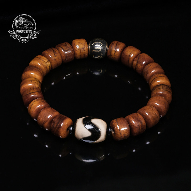 布达拉宫牛骨九眼西藏天珠手串闪电虎牙香灰念珠佛珠男女文玩手链