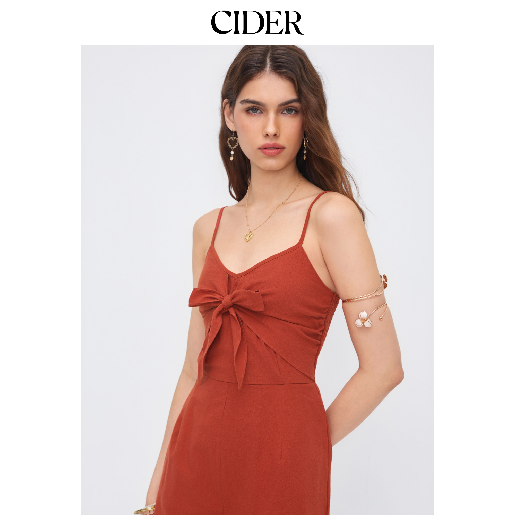 CIDER棉蝴蝶结抽褶连体短裤收腰短款连身裤114622936
