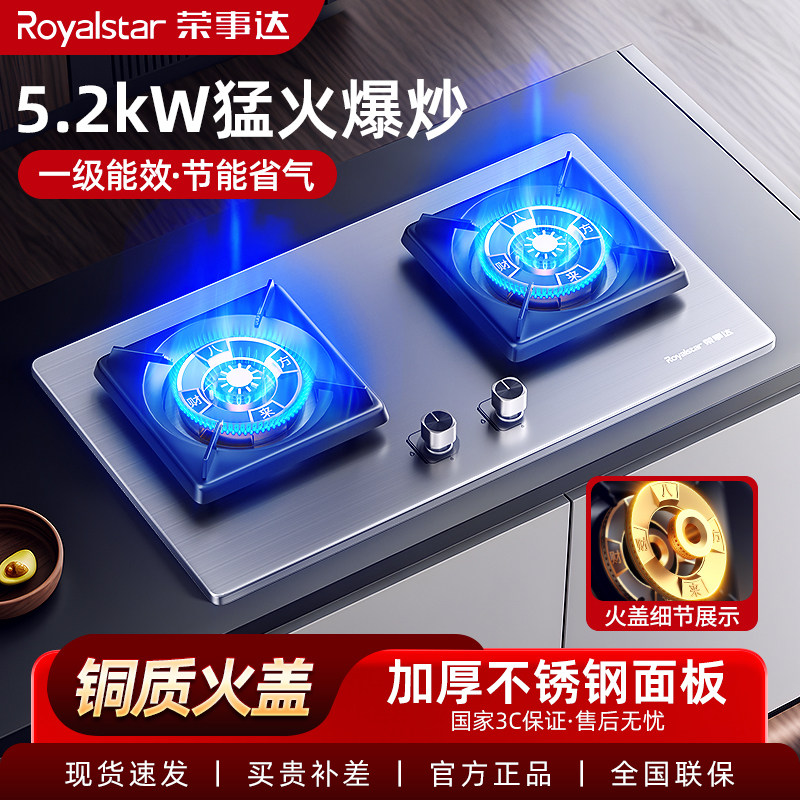 荣事达燃气灶厨房家用双灶猛火台嵌两用煤气灶定时双头节能炉具