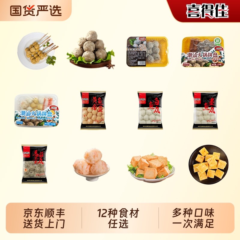 【99任选8】喜得佳火锅食材任选共12款虾滑牛肉丸墨鱼丸黄金鱼蛋