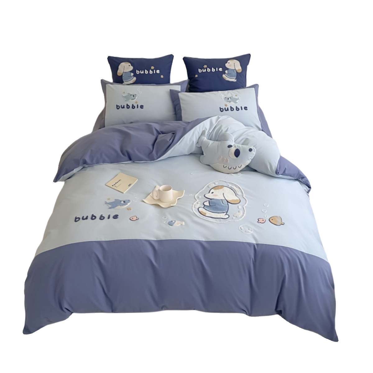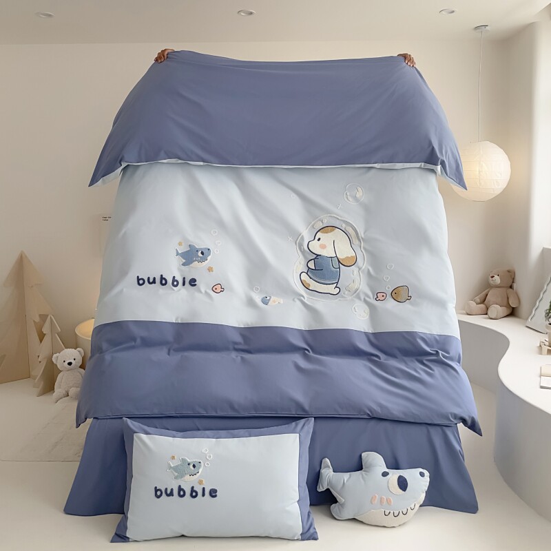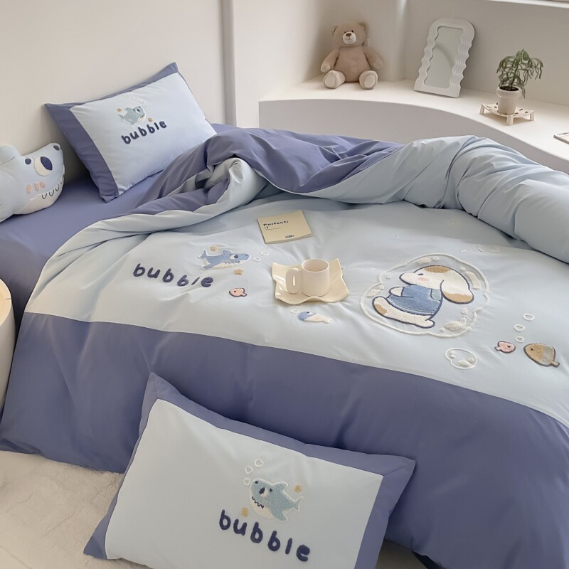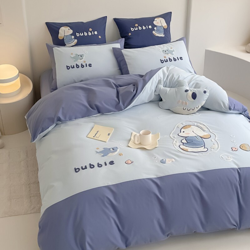 无印良品全棉四件套学生宿舍纯棉卡通儿童被套床单三件套床上用品