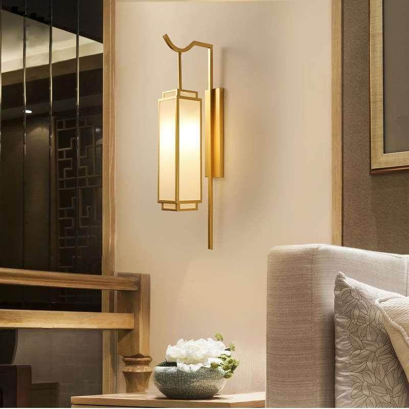 新中式床头灯卧室壁灯简约仿古酒店过道灯具客厅复古新中式走廊灯