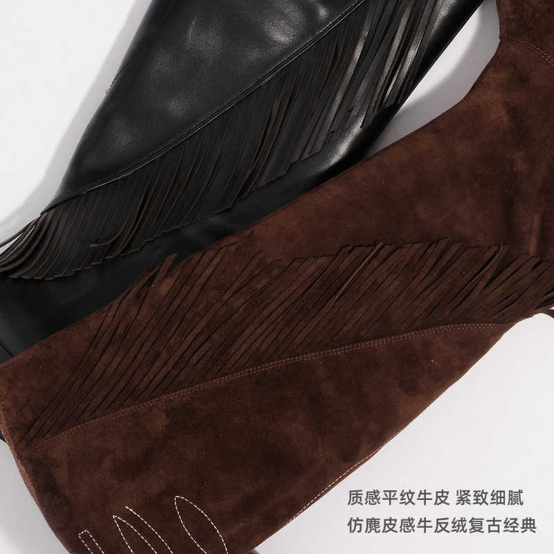 尖头坡跟显瘦长靴 不对称皮革流苏灵动时髦