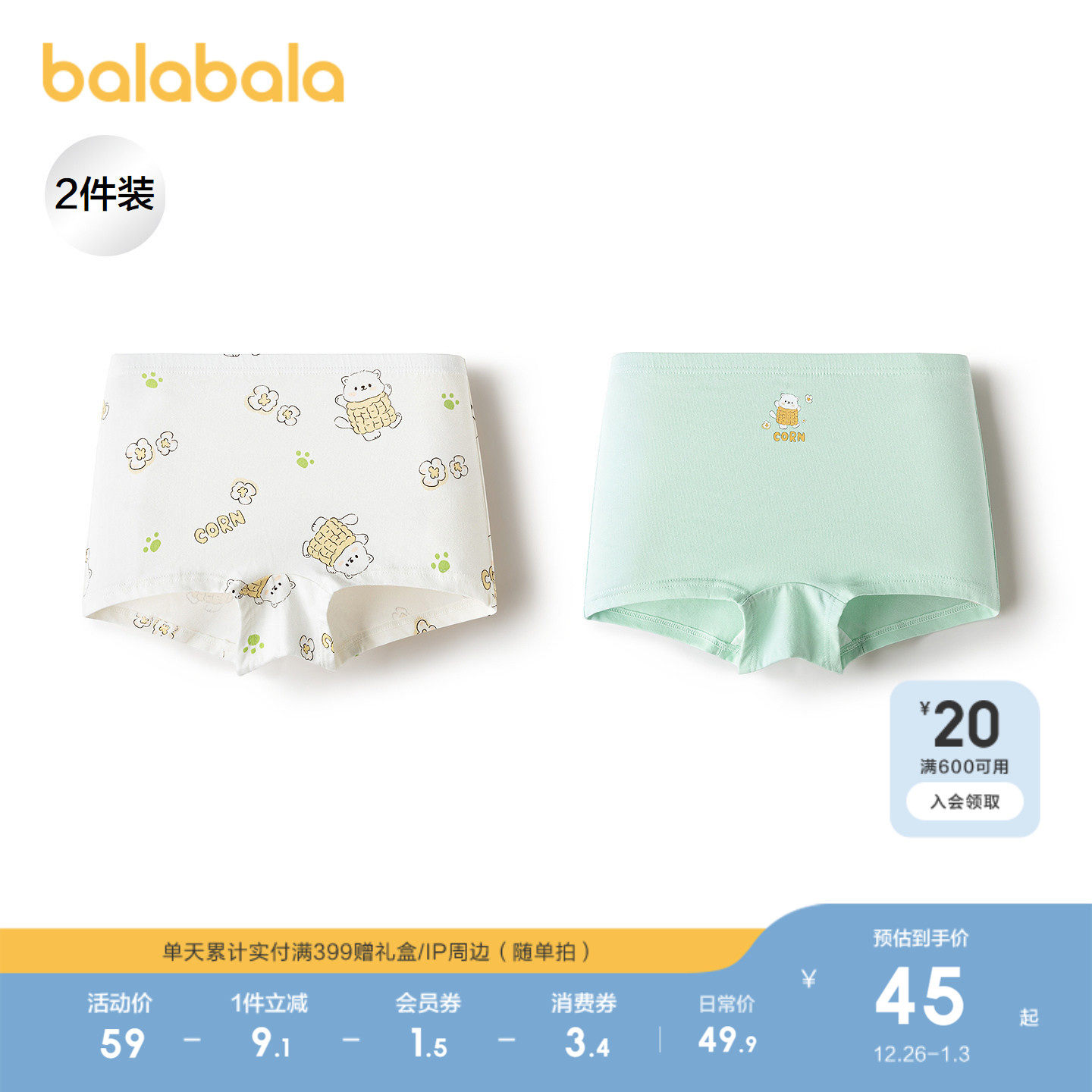 【商场同款】巴拉巴拉女童内裤儿童四角短裤小童宝宝不夹PP两条装