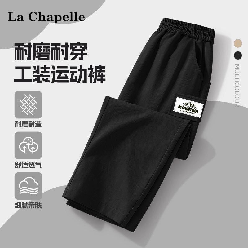 拉夏贝尔男童裤子2025年秋季纯棉薄款运动长裤儿童宽松时髦工装裤