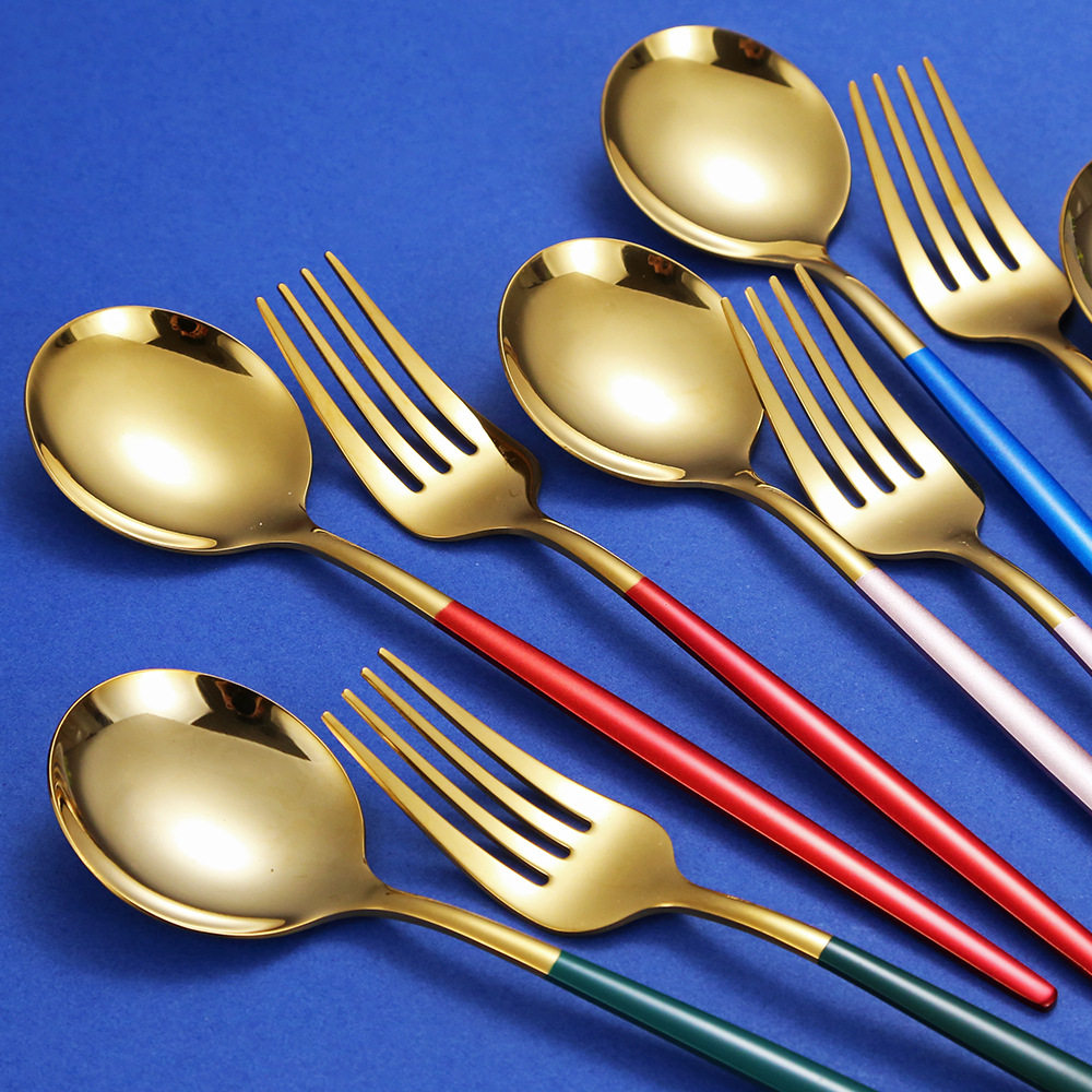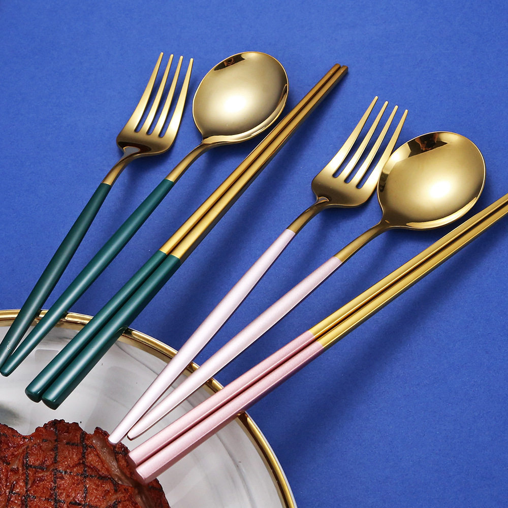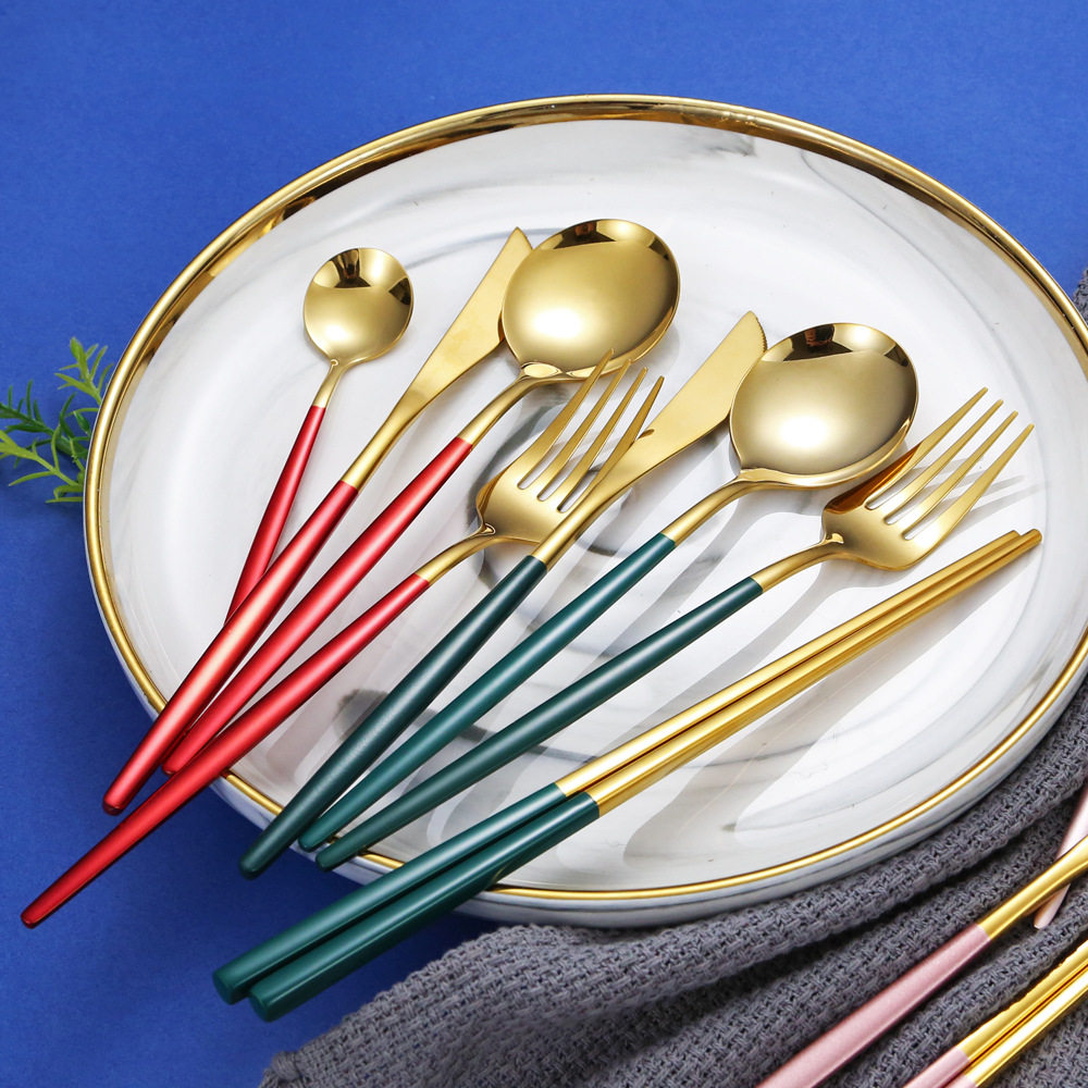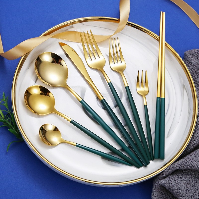 葡萄牙304不锈钢刀叉勺筷子网红绿金勺叉筷西餐牛排刀叉甜品餐具