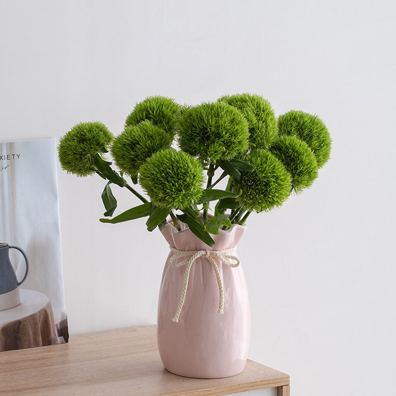 桌面创意福袋陶瓷花瓶装饰干花粉色北欧客厅现代插花摆件水培花器