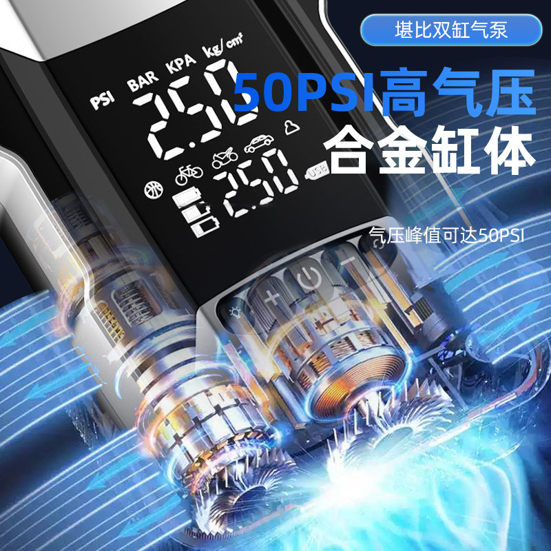 车载充气泵双缸高压大功率汽车用家用两用220v轮胎小型打气筒加气