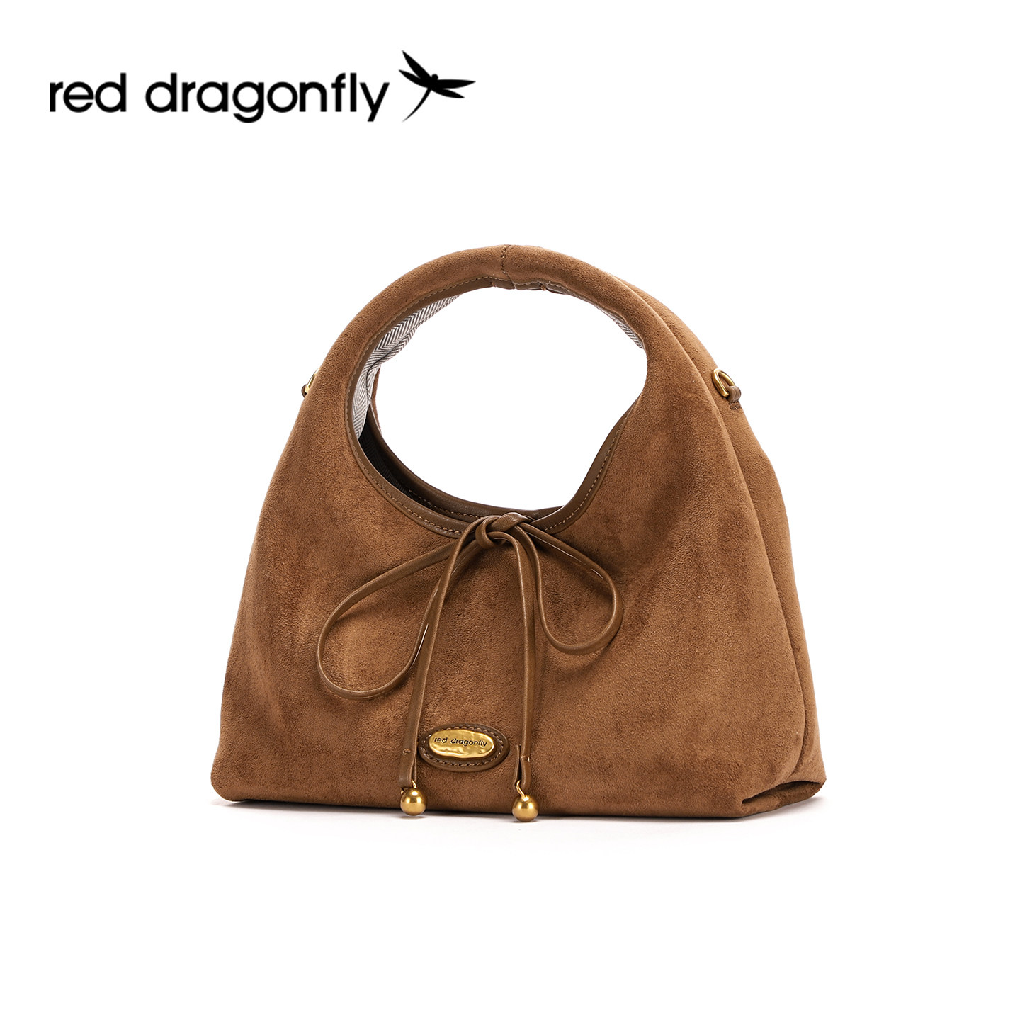 红蜻蜓蝴蝶结反绒小拎包新款三角饭团包生日礼物单肩斜挎手提女包